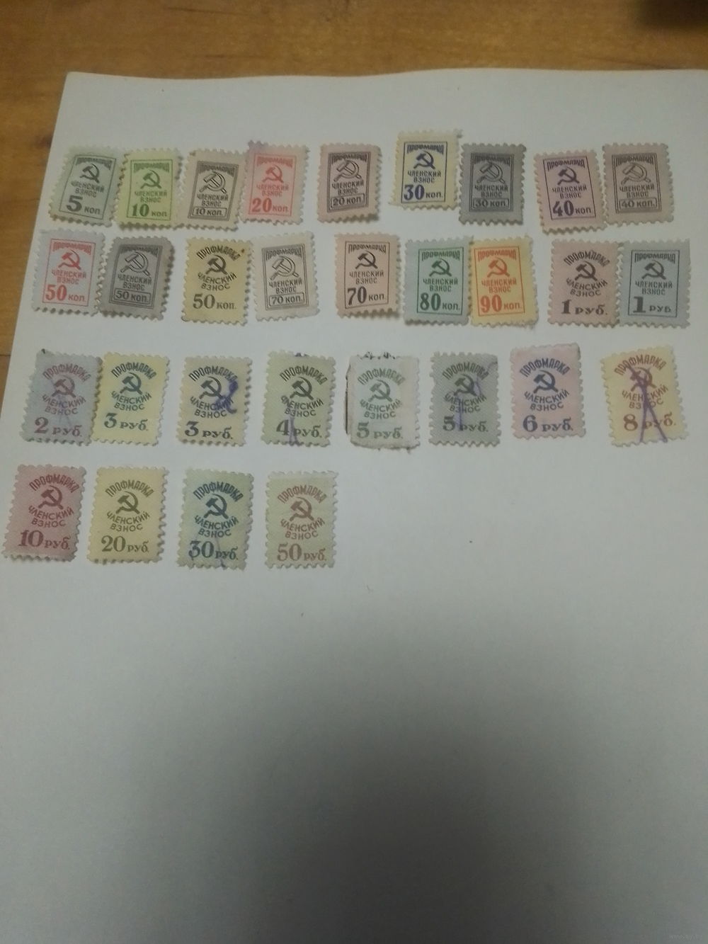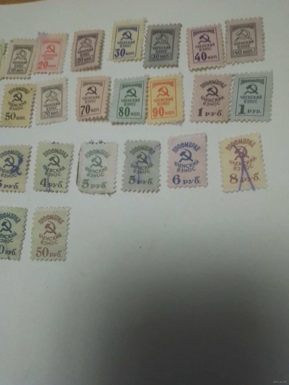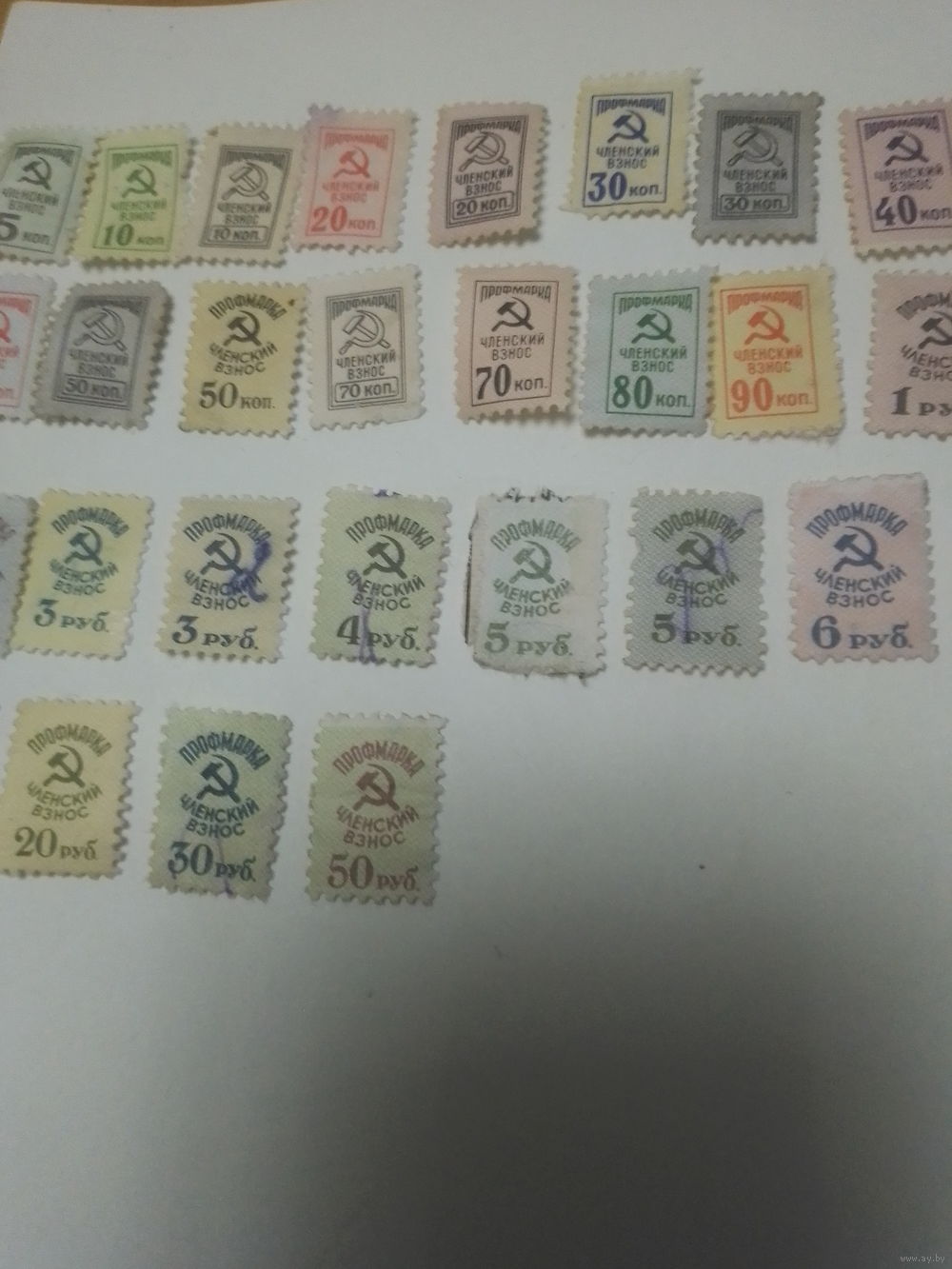 СССР Профмарки членский взнос . От 5 копеек до 50 рублей . 30 штук.