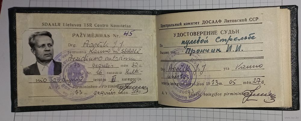 СССРудостоверения судья пулевая стрельба ЛИТВА 1973.(А47)