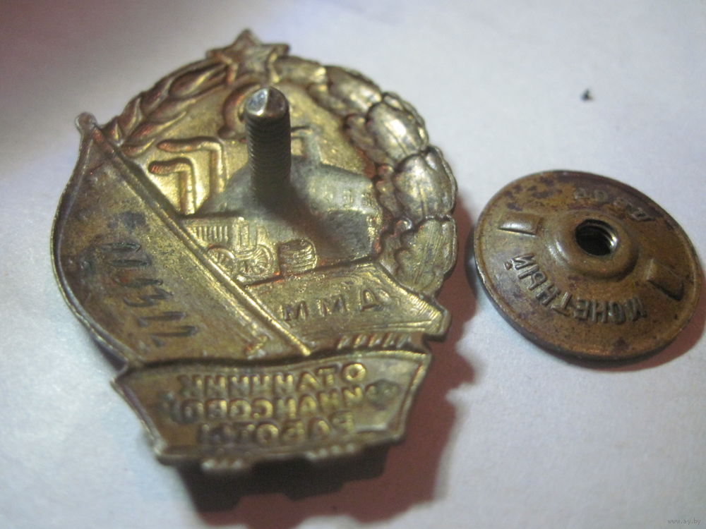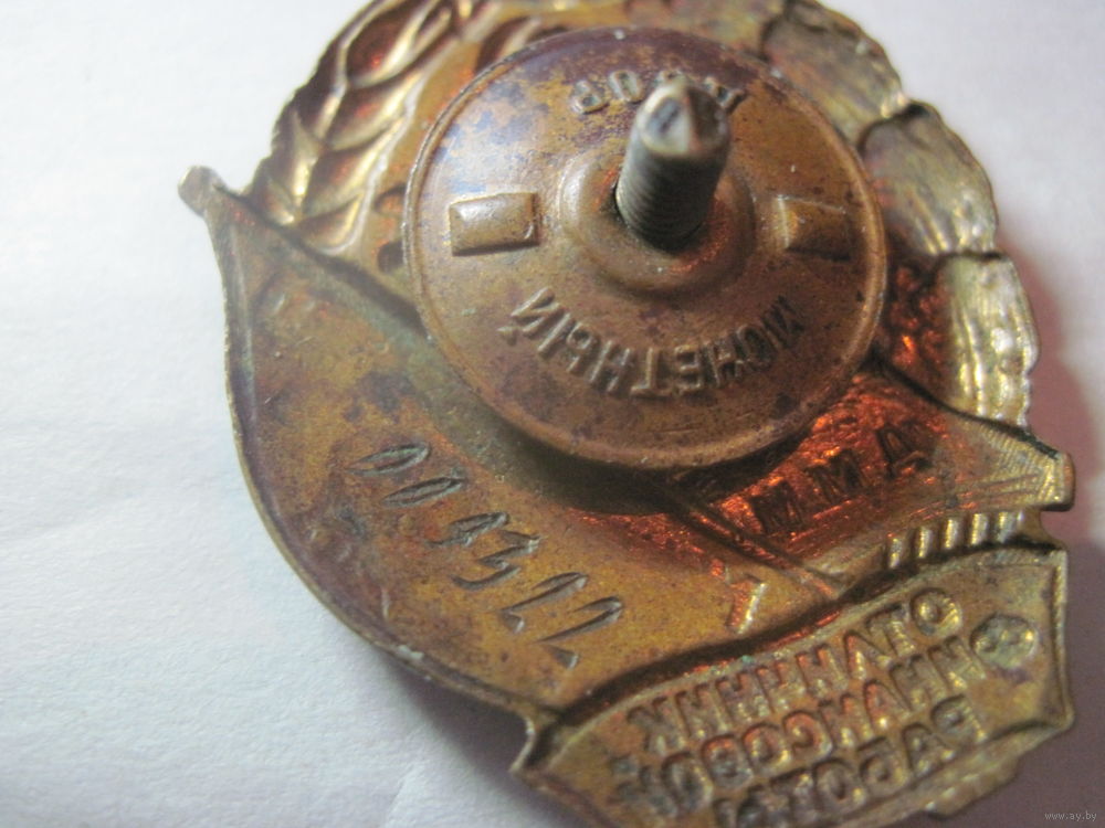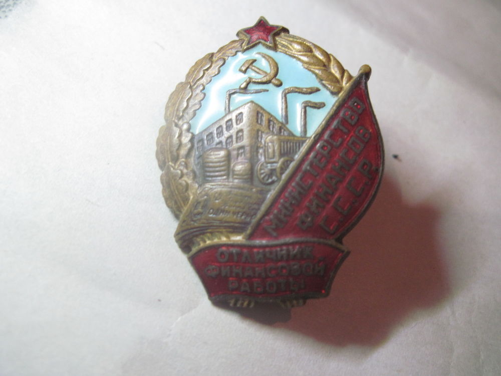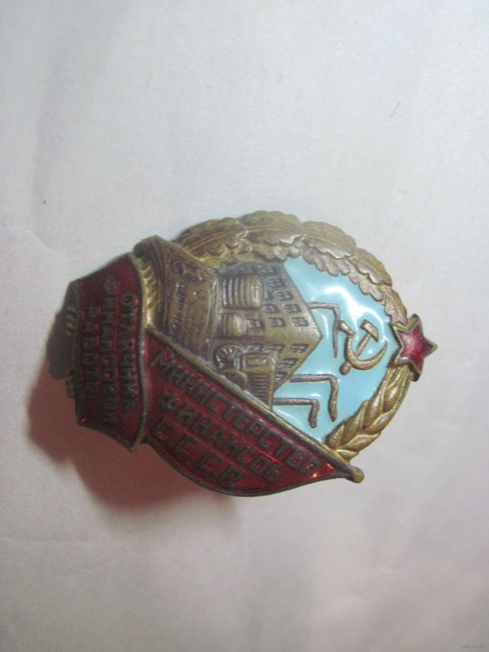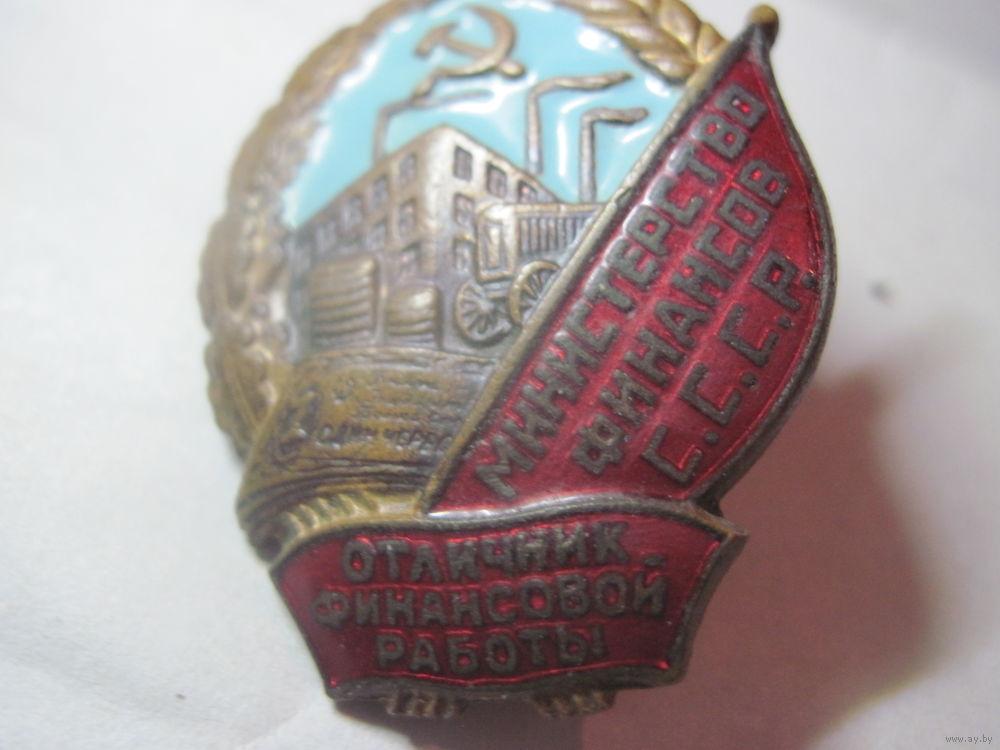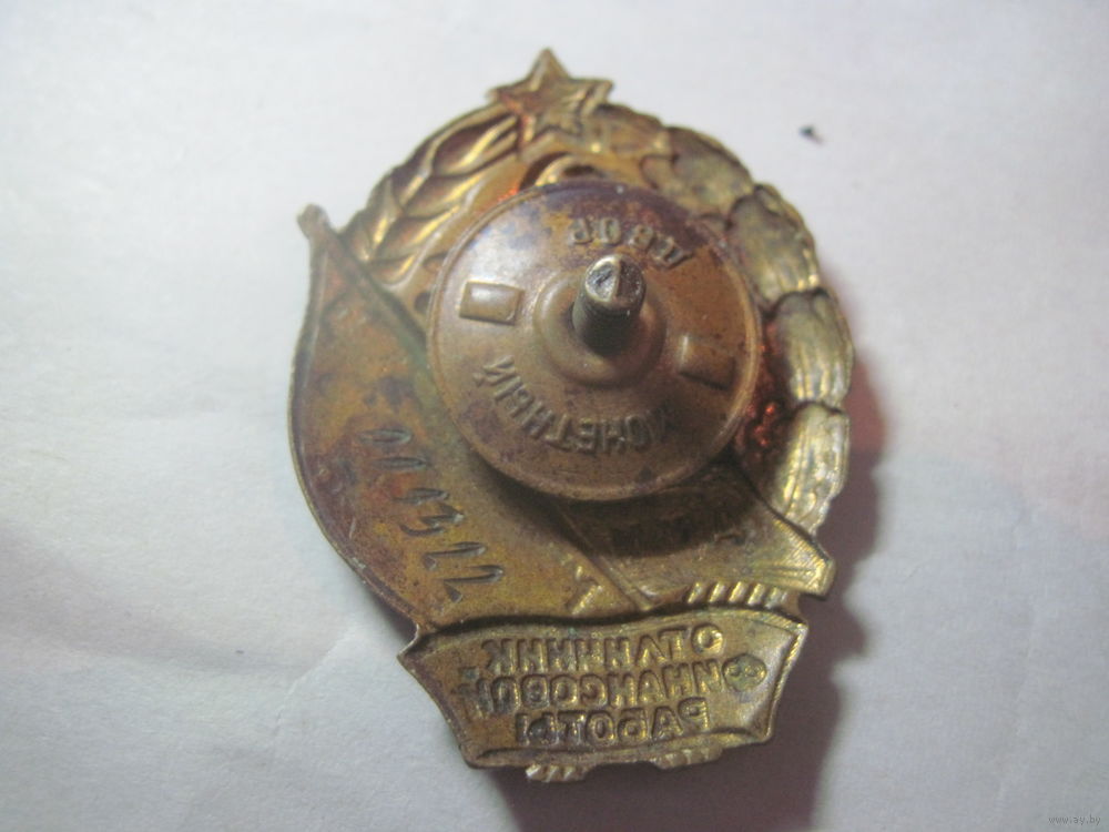СССР редкий и великолепный по состоянию знак Отличник финансовой работы бронза контрпрофиль номерной ММД родная гайка
