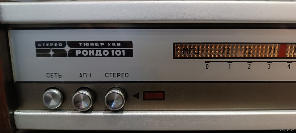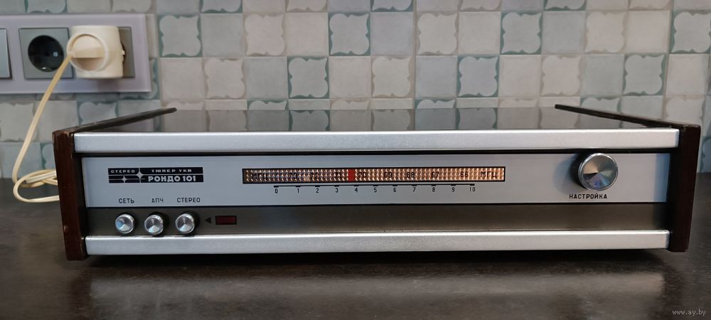 Стационарный транзисторный тюнер "Рондо-101-стерео" с I-кв 1976 года выпускал Таганрогский завод Прибой. Тюнер - представляет собой радиоприемное устройство первого класса, предназначенное для приема моно и стереофонических радиовещательных программ в УКВ-ЧМ диапазоне (65,8...73 МГц). Он рассчитан на совместную работу с любой бытовой радиоаппаратурой, имеющей стереофонический усилитель НЧ. Чувствительность - 5 мкВ при отношении сигнал/шум - 26 дБ, переходное затухание - 25 дБ, диапазон звуковых частот на выходе для усиления 31,5...15000 Гц. Питание от сети 127 или 220 вольт. Потребляемая мощность 5 Вт. Размеры тюнера - 400х200х80 мм, масса 3 кг.
