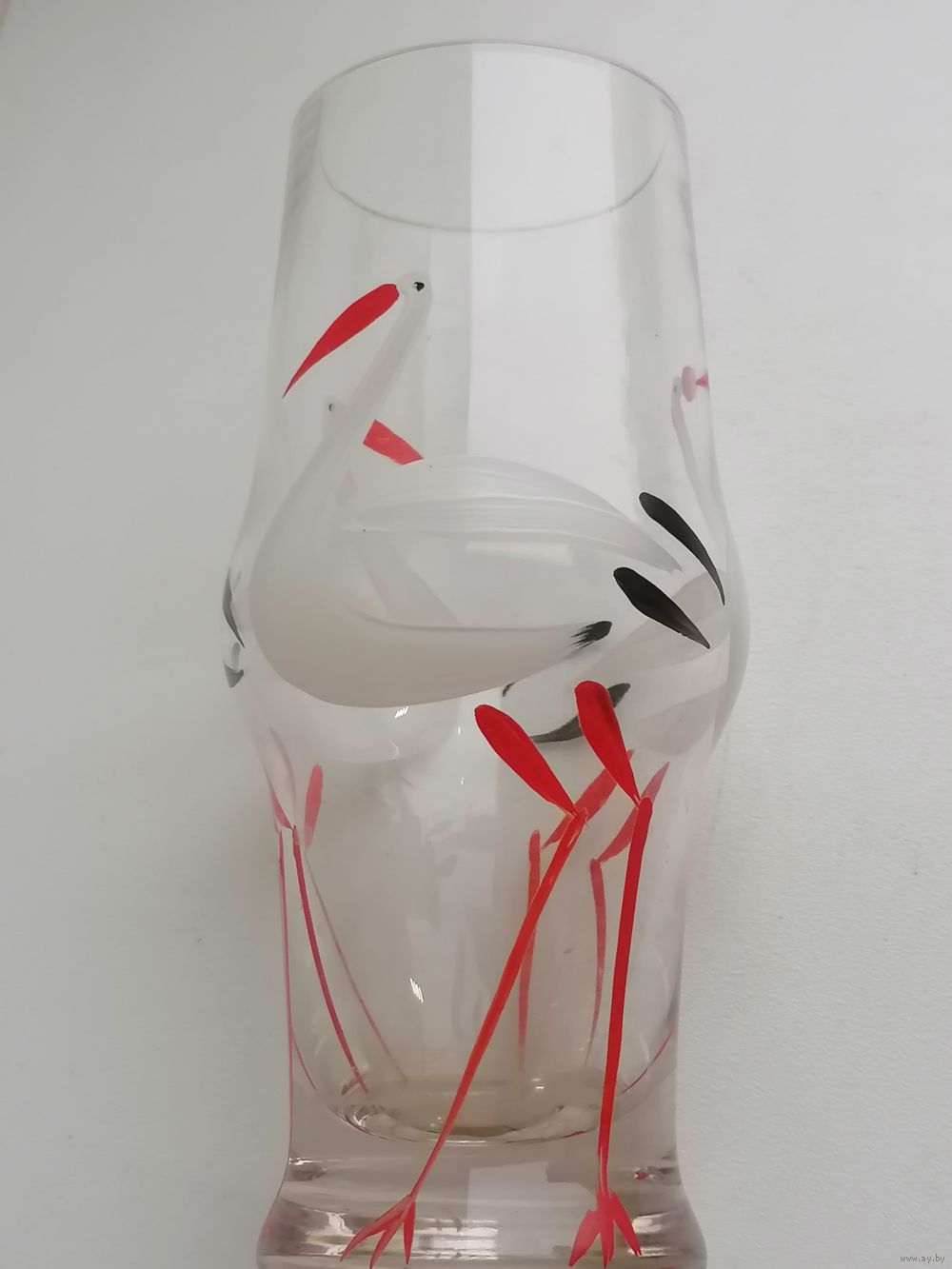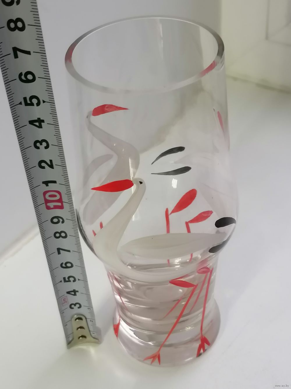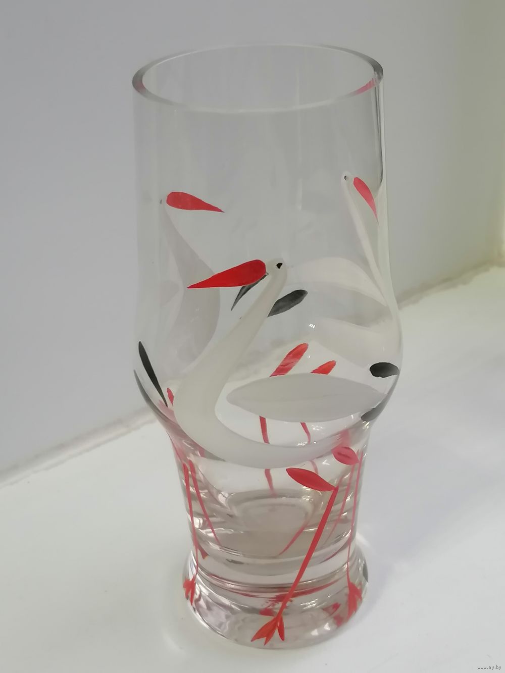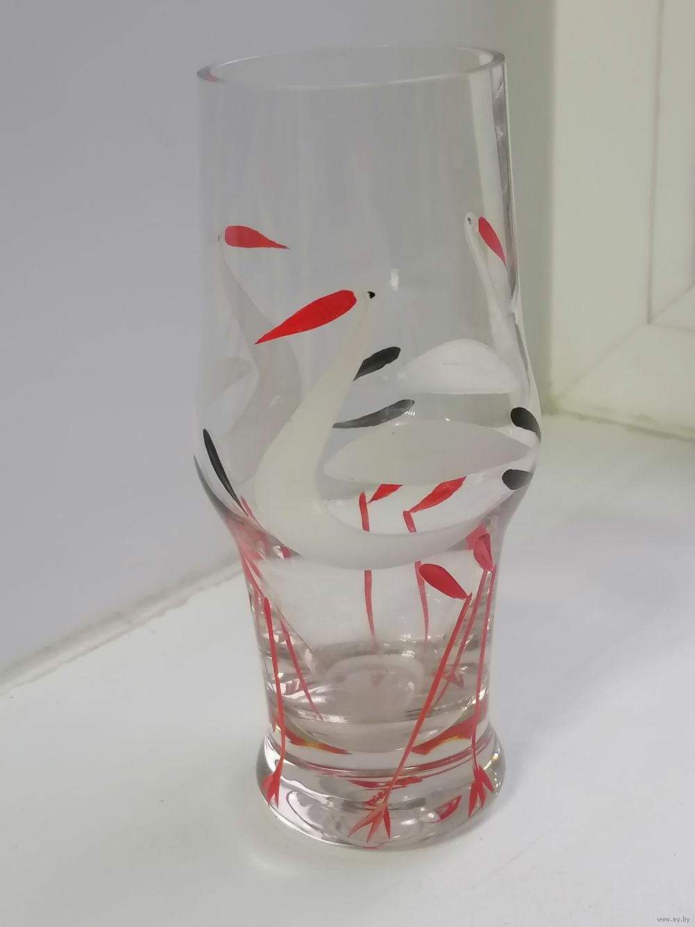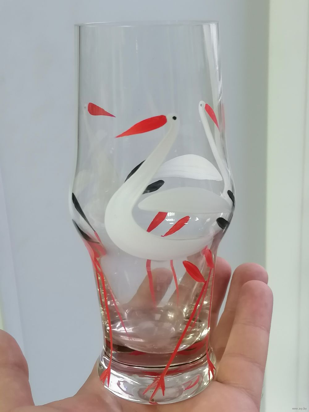 Стакан, бокал с живописью Аист, Бусел, стекло, Неман