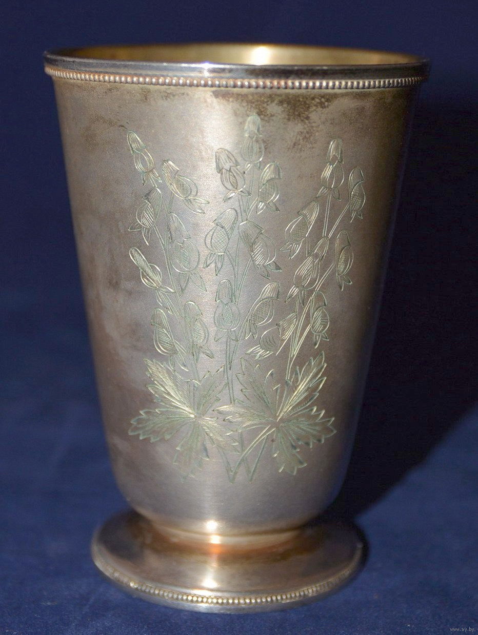 серебро 875 пробы, гравировка, золочение, СССР, вес 90,4 грамм, высота 9, 2 см, диаметр макс. 6,5 см