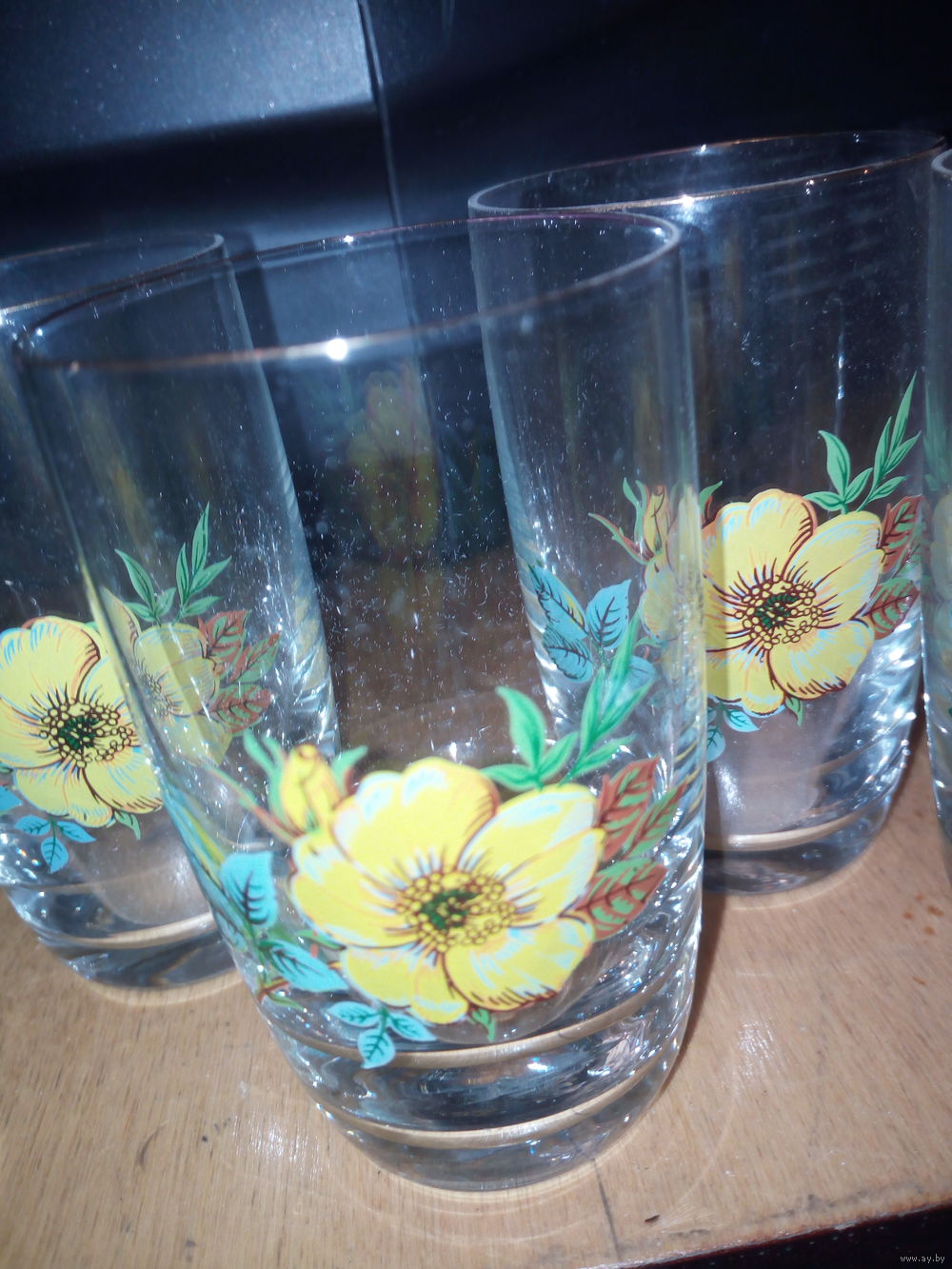 стаканчики из богемского стекла, без сколов,золотая кайма по краю сохранена.невозможен возврат товара после покупки.