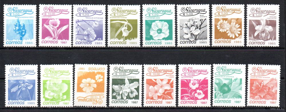 Стандартный выпуск Цветы Никарагуа 1986 год серия из 16 марок