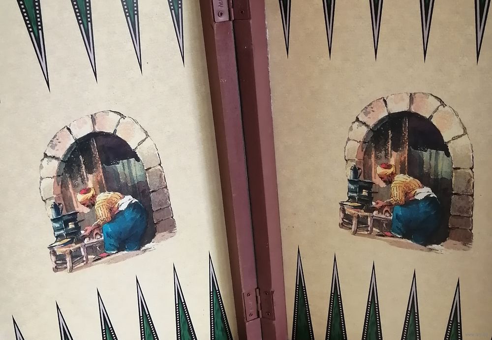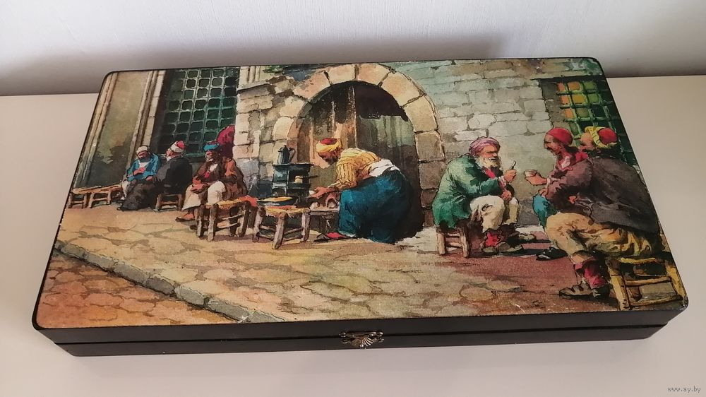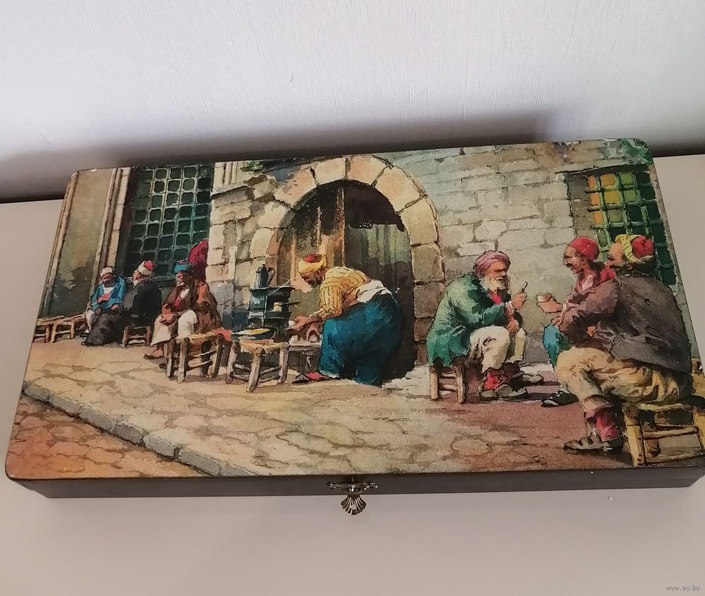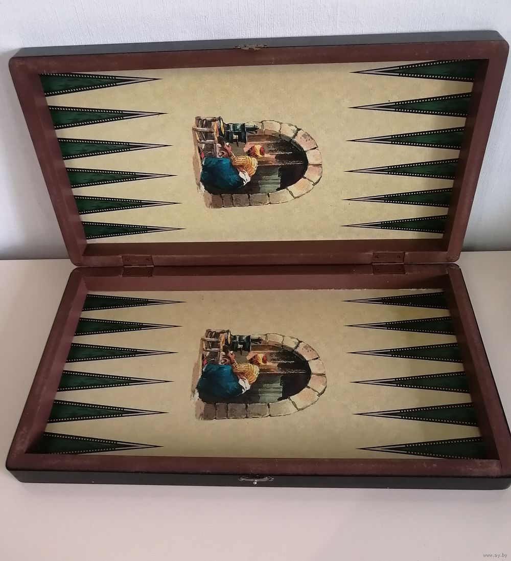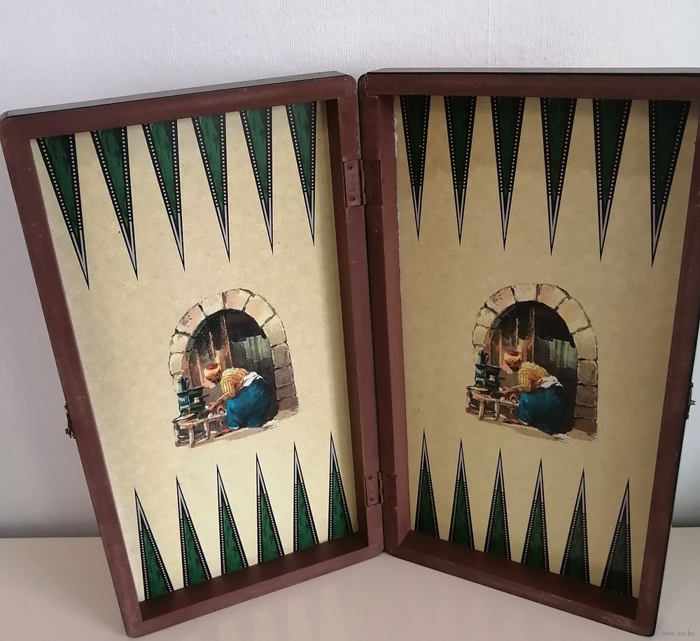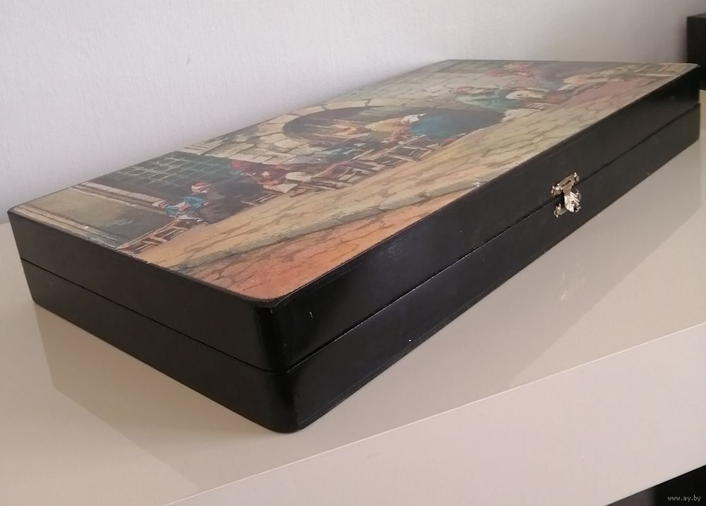 Старая (?) коробка для нард. Размеры в сложенном виде: длина 46 см, ширина 25 см, высота 6 см. Бел почта и карта ББ