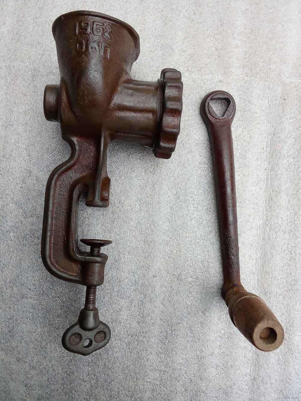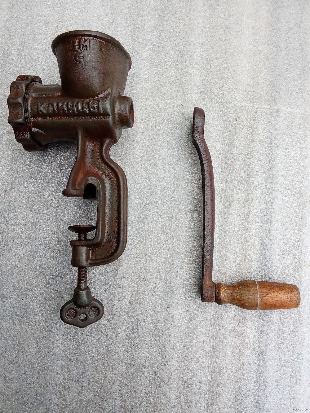 Старая чугунная мясорубка Клинцы в коллекцию. Только корпус и ручка - всё, что осталось. Состояние приемлемое.