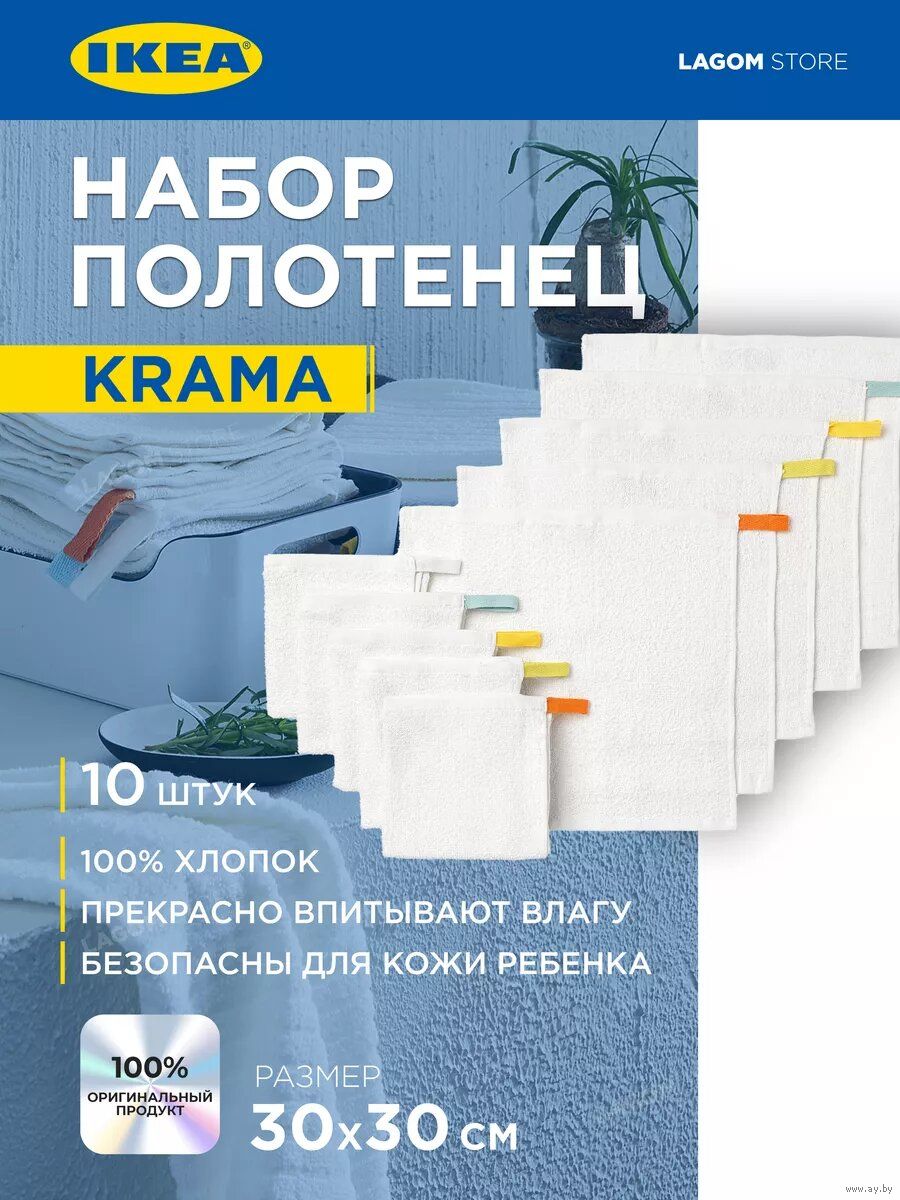Набор полотенец IKEA KRAMA, 30х30 см, 10 штук