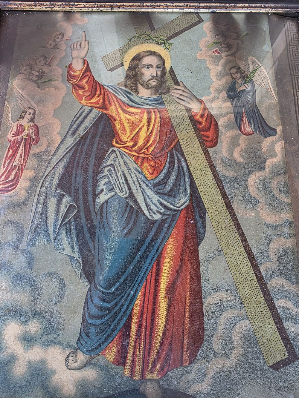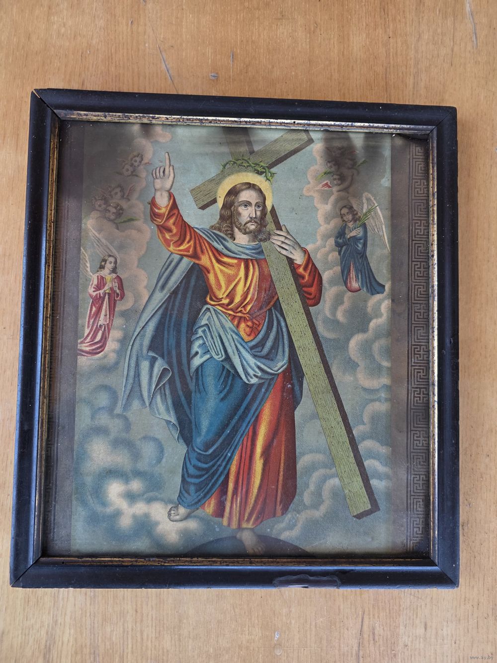 36,5×33 см, рамка 2 см ширина. Под стеклом, на бумаге.