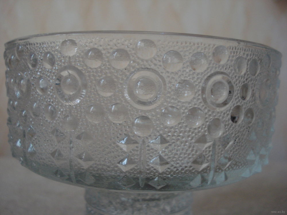 Стекло. Высота вазы - 10 см . Верхний диаметр вазы - 11 см . Диаметр нижнего основания вазы - 8 см. В отличном состоянии. Без сколов и трещин. Всё на фото.