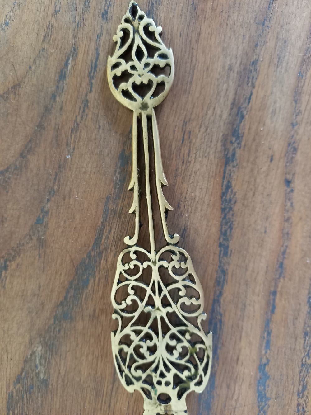 Большая старинная сервировочная ложка серебро с латунью. Вес 100 г.