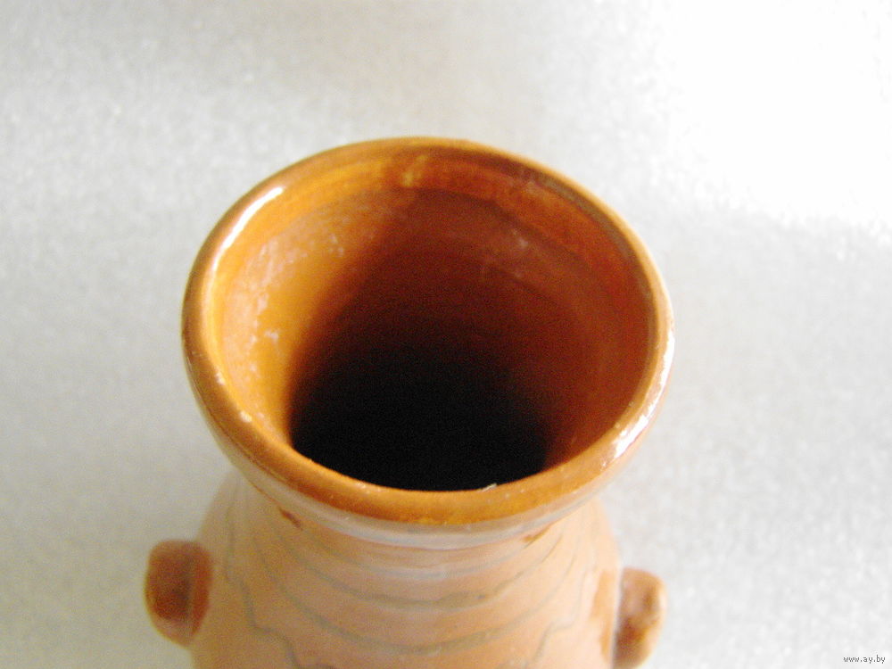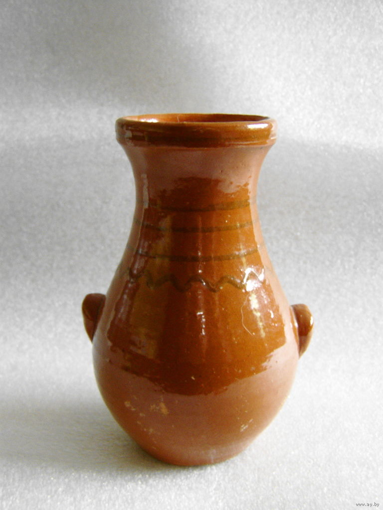 Старая глиняная ваза для цветов в форме кувшина. Ручная работа сельского гончара, примерно датируемая 1920-1930 гг. (Высочанский (Лиозненский - ?) район Витебского округа)
