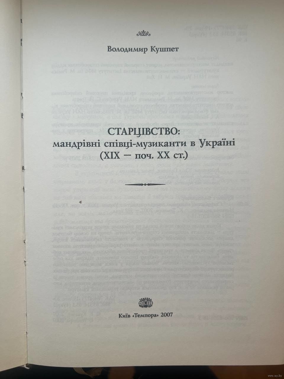 Книга описывает историю возникновения и существования украинских бродячих музыкантов-старцев.