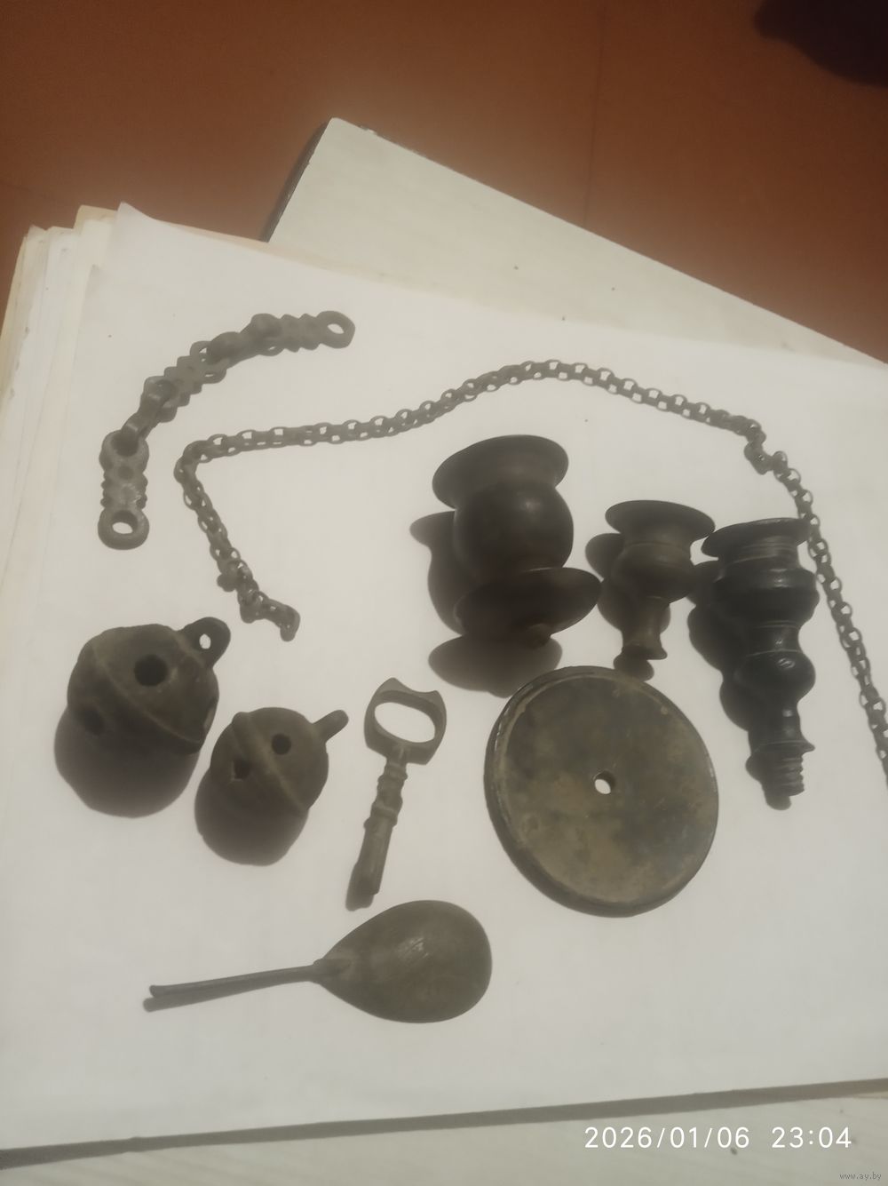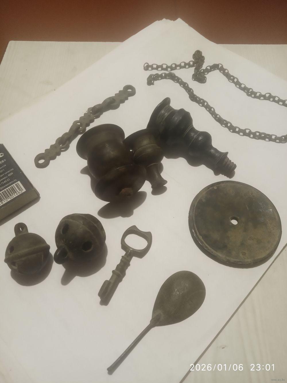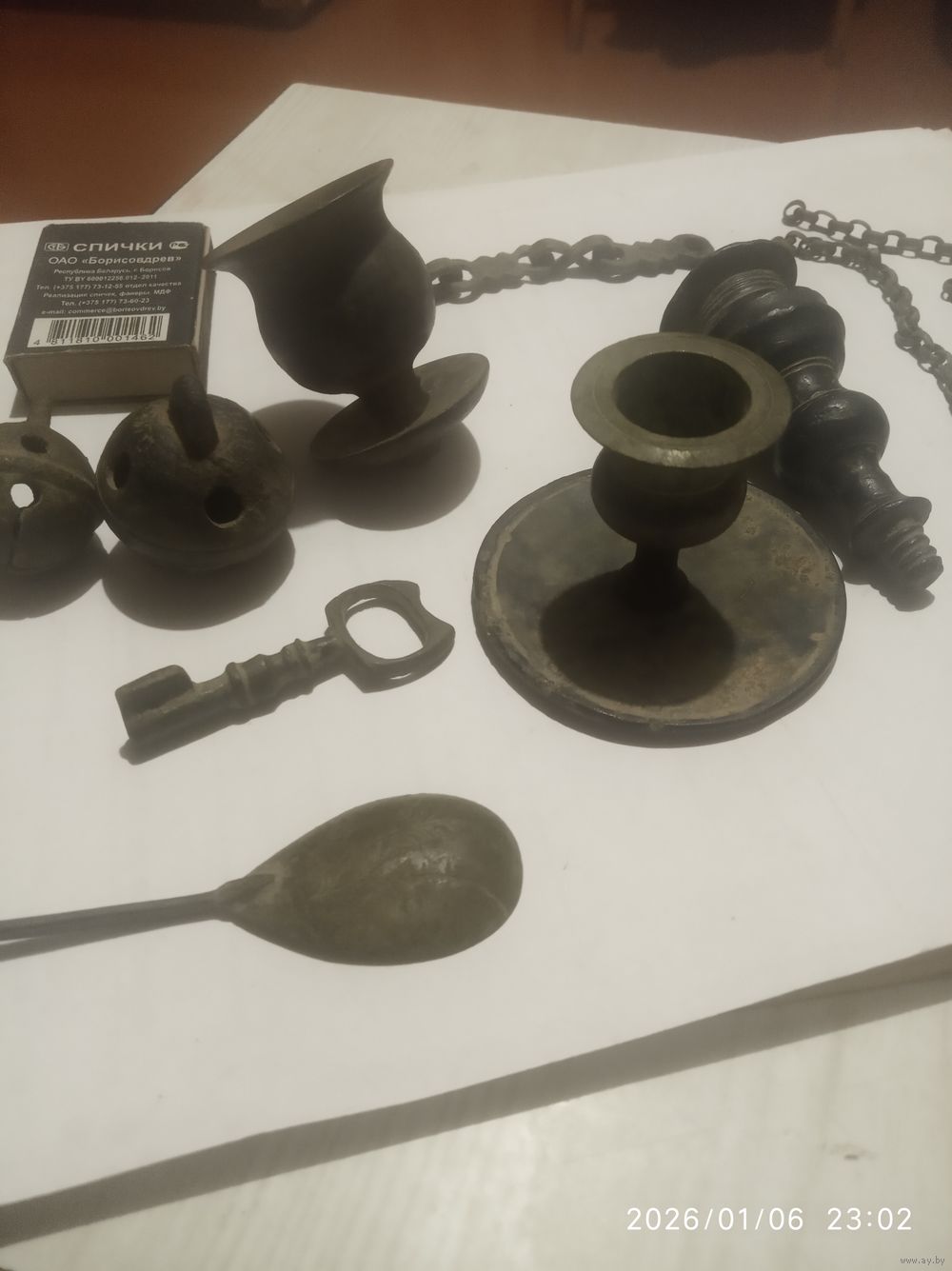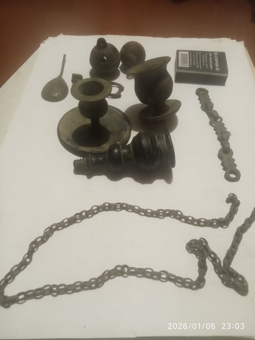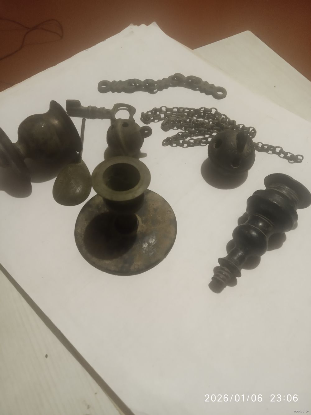 Старинная Бронза, Подсвечники, Бубенчики целые,цепочка и красивый ключик.
