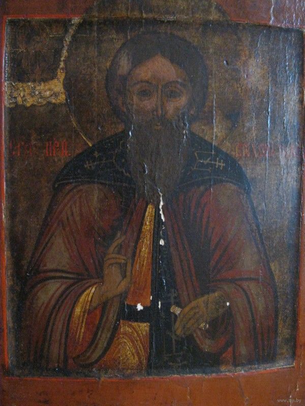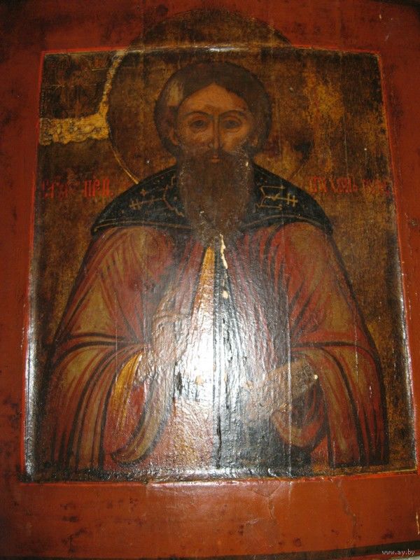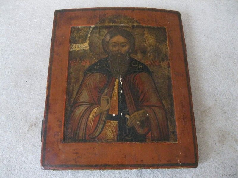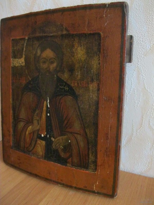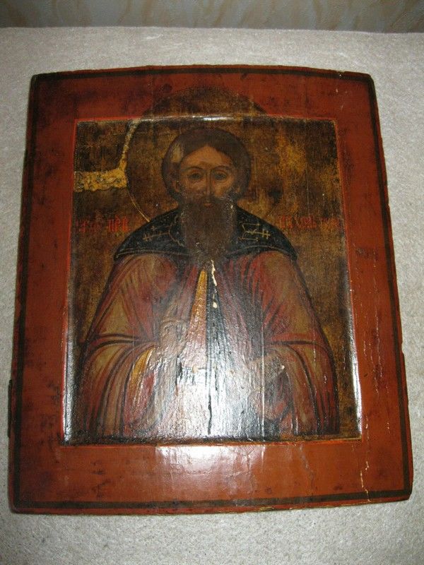 Старинная чудотворная икона "Святой Преподобный Тихон Луховской, Костромской, чудотворец". Вторая половина 18-го века.