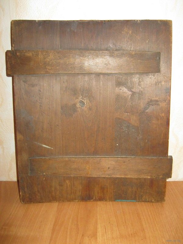 Деревянная доска, крепкая, ровная, с вертикальным изгибом. Доска с ковчегом. С обратной стороны доски две параллельно расположенные врезные шпонки. Размеры иконы: 27 см х 31,5 см х 2,5 см .