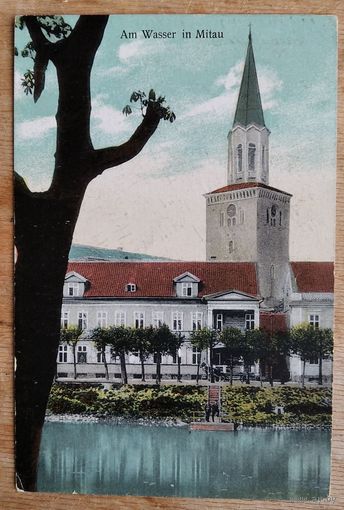 Старинная импортная открытка. На набережной в Митау (Елгава).1918 г. Подписана.
