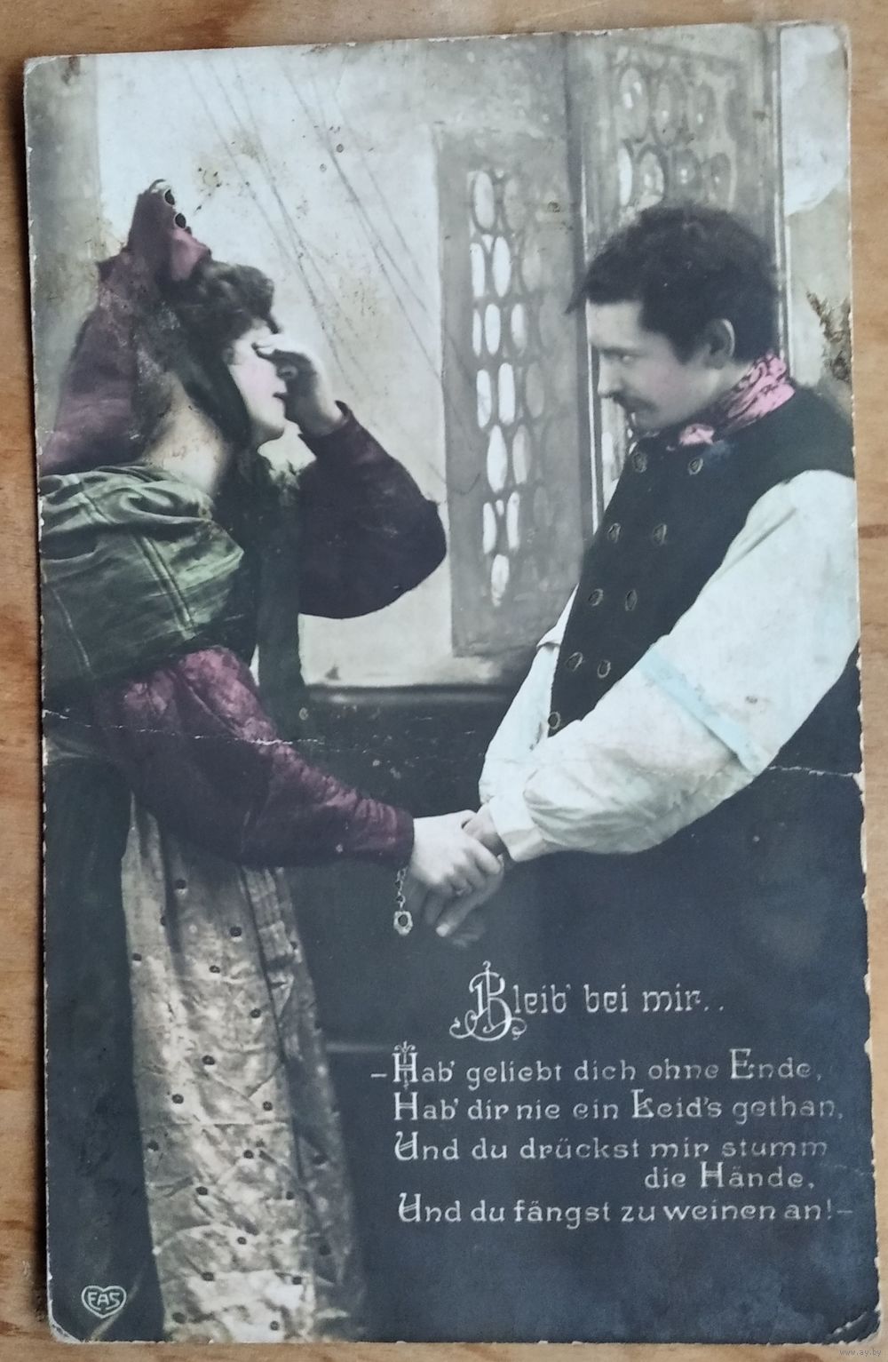 Старинная импортная открытка. Свидание. Подписана. Марка.
