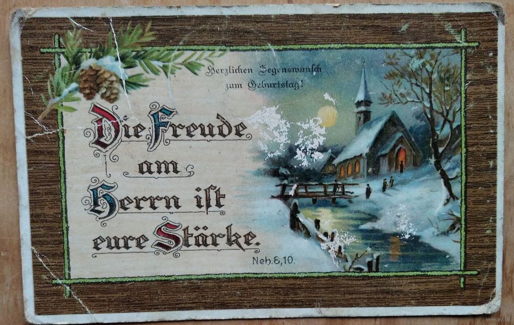 Старинная импортная поздравительная открытка. Подписана.