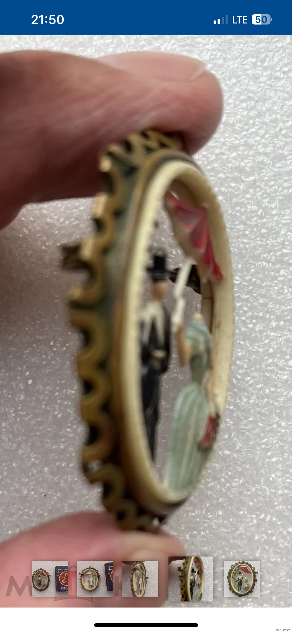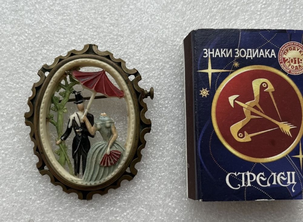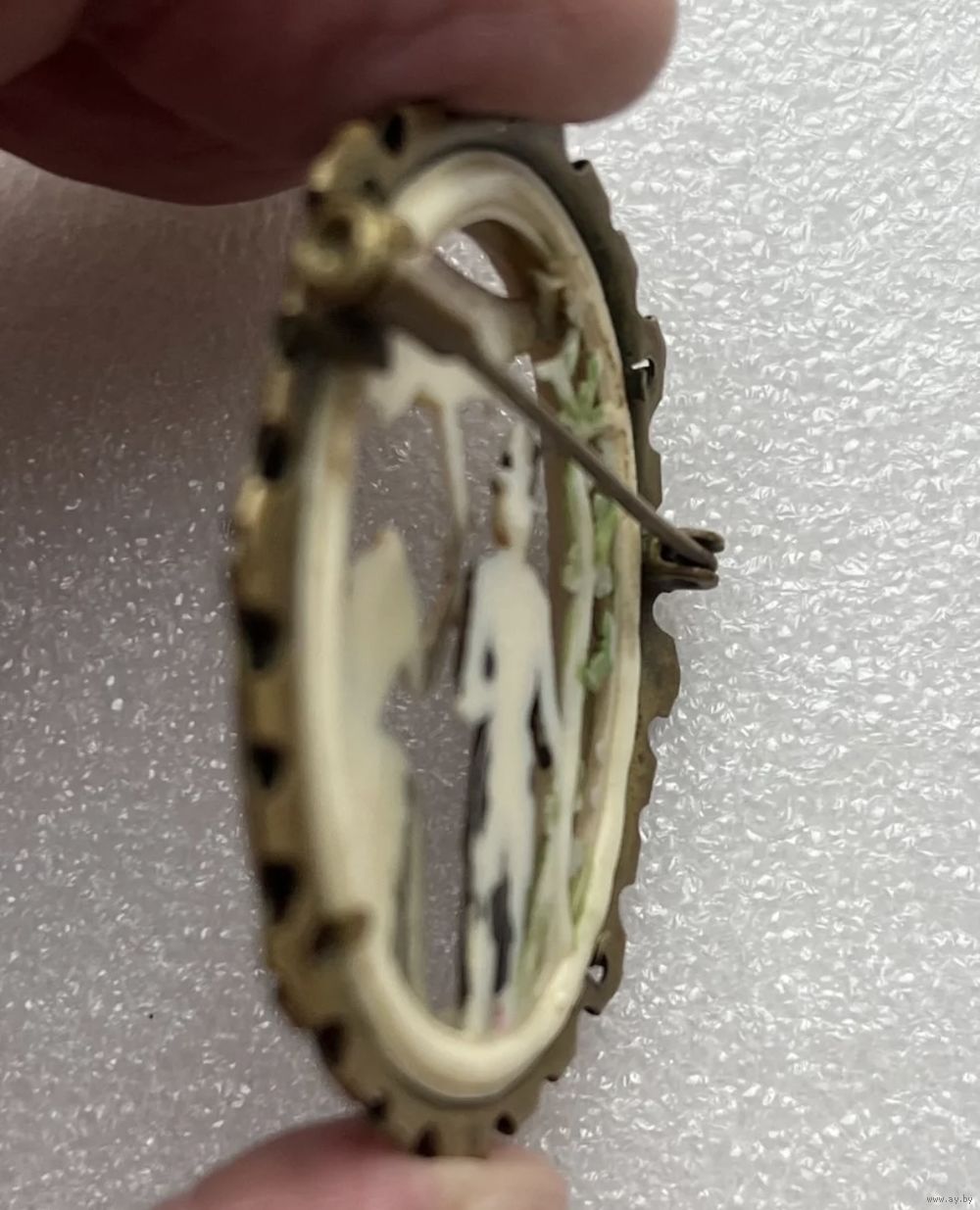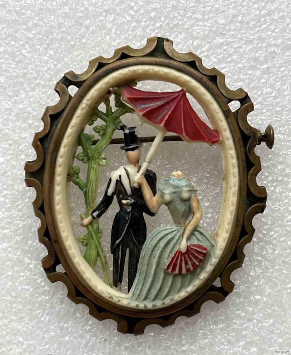 Старинная интересная брошь. Европа. Латунь, пластик. Есть дефекты!