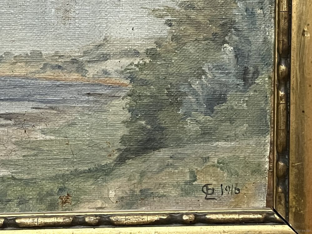 Старинная картина. Холст, масло. Европа. 1916 г. Р-р: с рамой 38 х 28 см. без рамы 28 х 19 см.