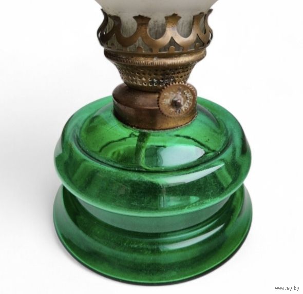 Основание — латунь (в родной патине), стекло — матовое (целое).