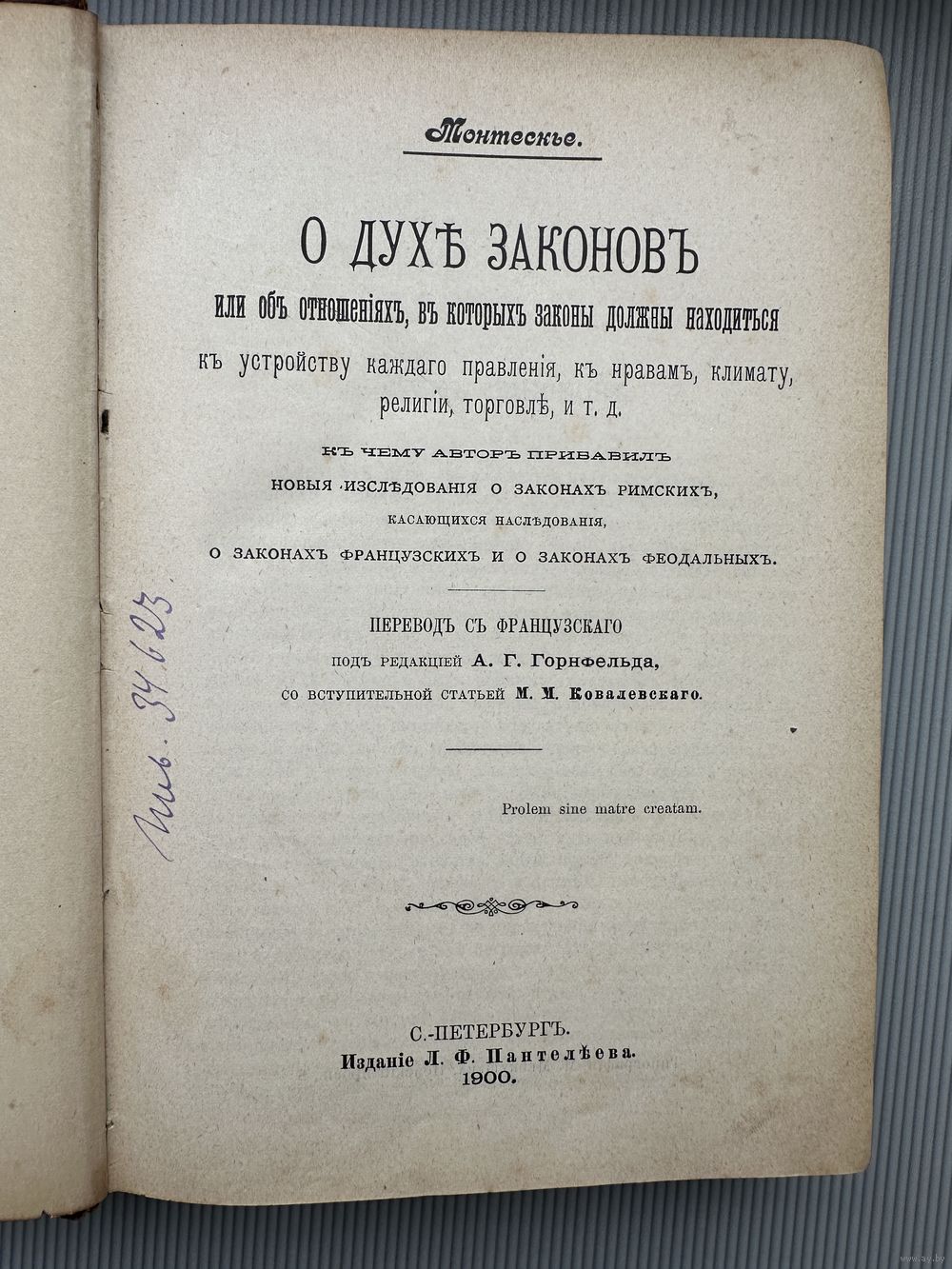 Монтескье Ш. О Духе Законов, или Об отношениях, в которых законы должны находиться к устройству каждого правления, к нравам, климату, религии, торговле и т. д.,