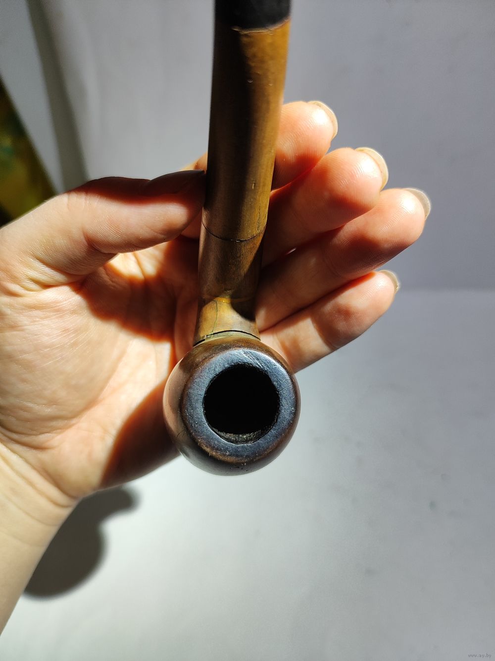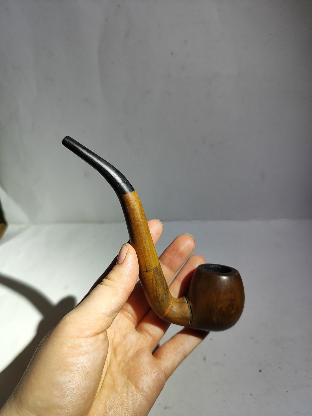 Длинна -16,8 см. В некоторых местах рассохлась от времени (есть пару трещин и трещина в месте соединения с трубкой). Состояние на фото.