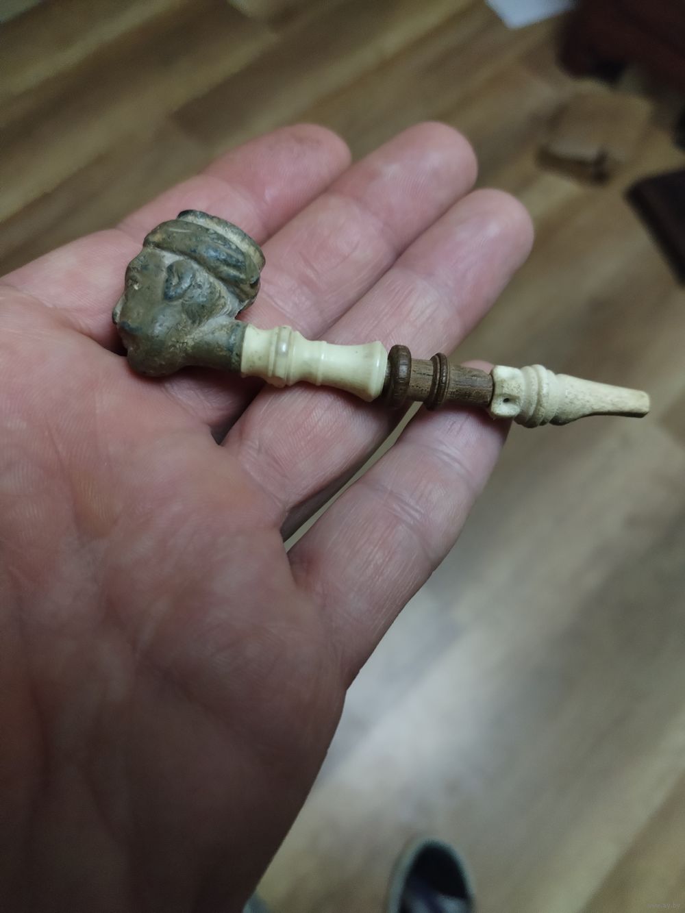 | Рабочая, восстановлена. Кость, маренный дуб олово. (Или оловяннестая бронза.) | |