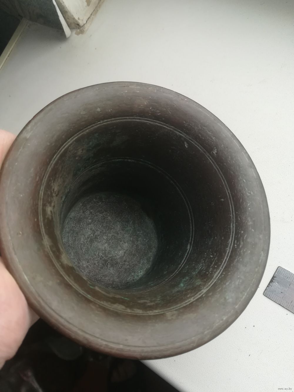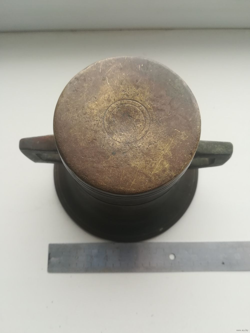 Старинная латунная ступка. Вес 1 кг.