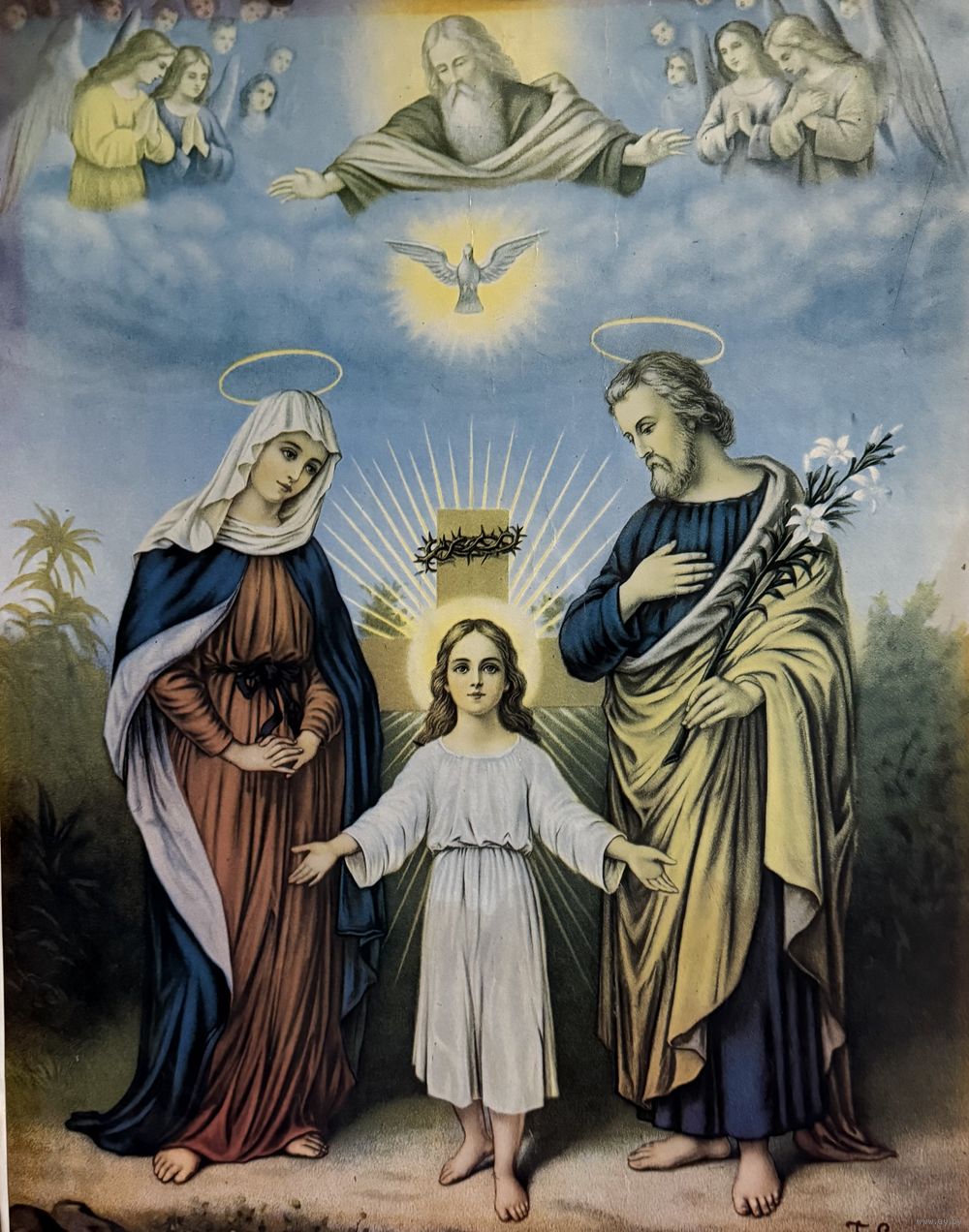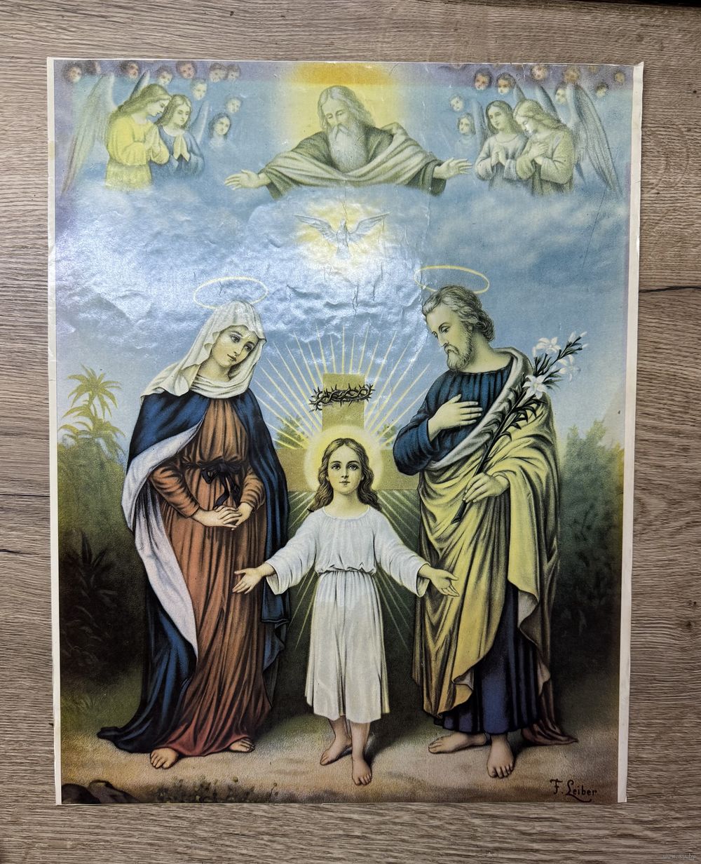 Старинная литография Святое Семейство