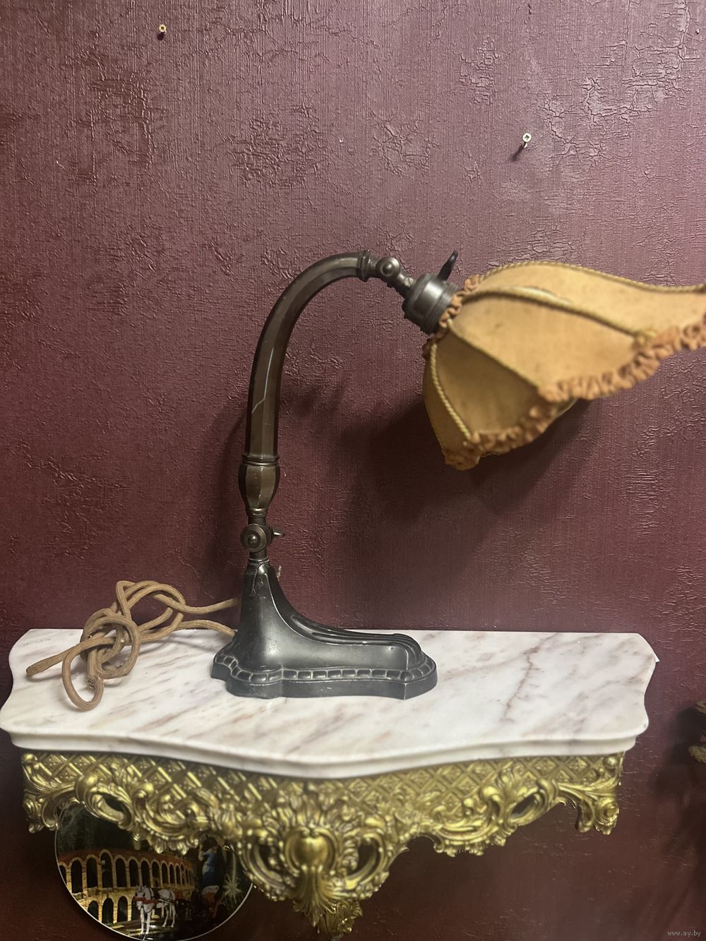 Старинная настольная лампа, 1900-1910 год, металл, ткань,Европа, много лотов с рубля