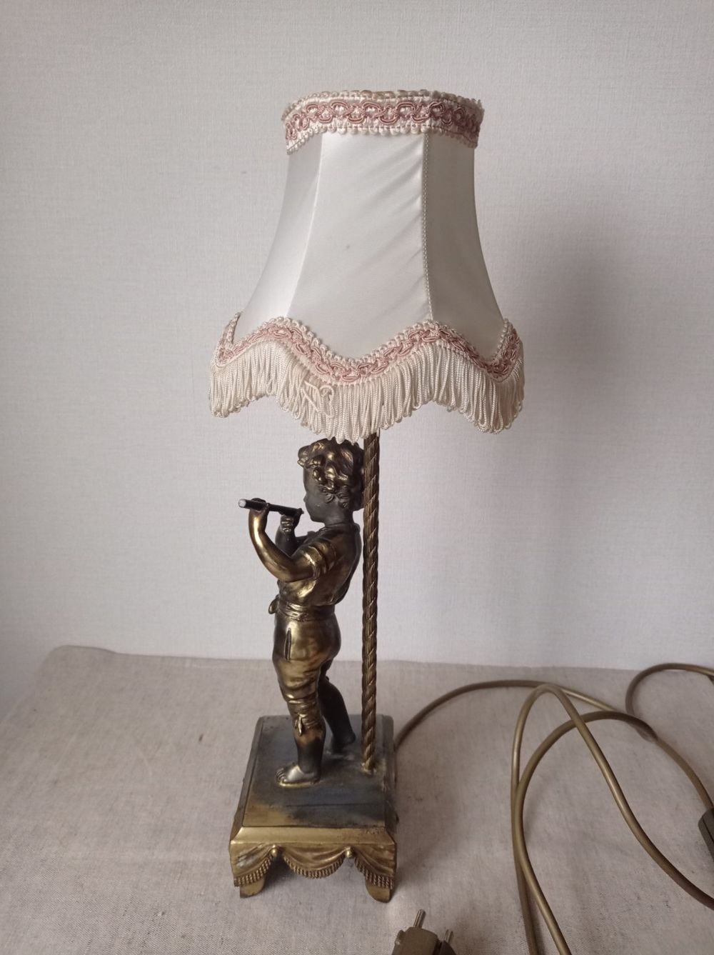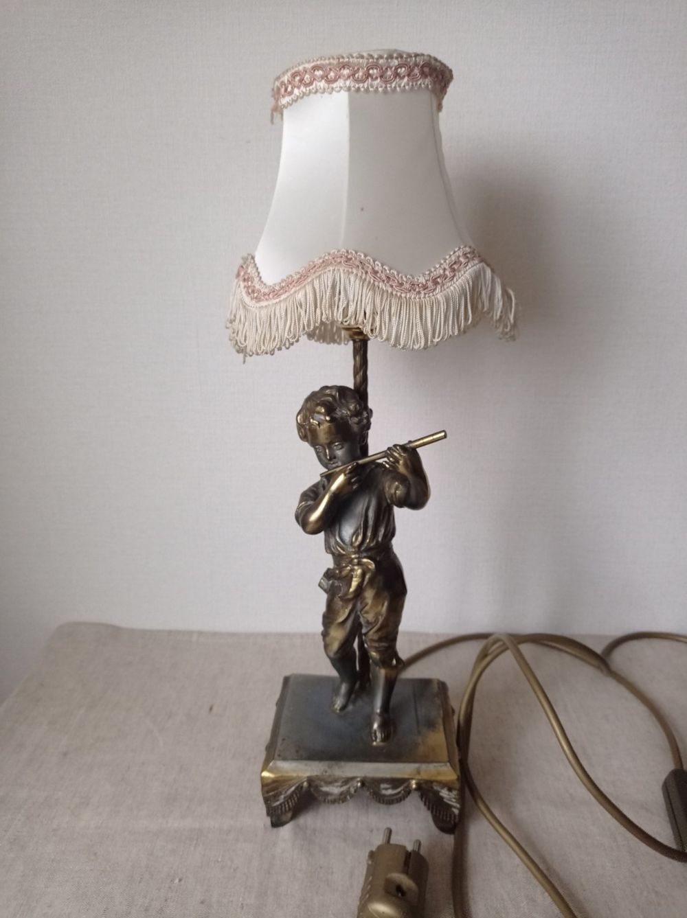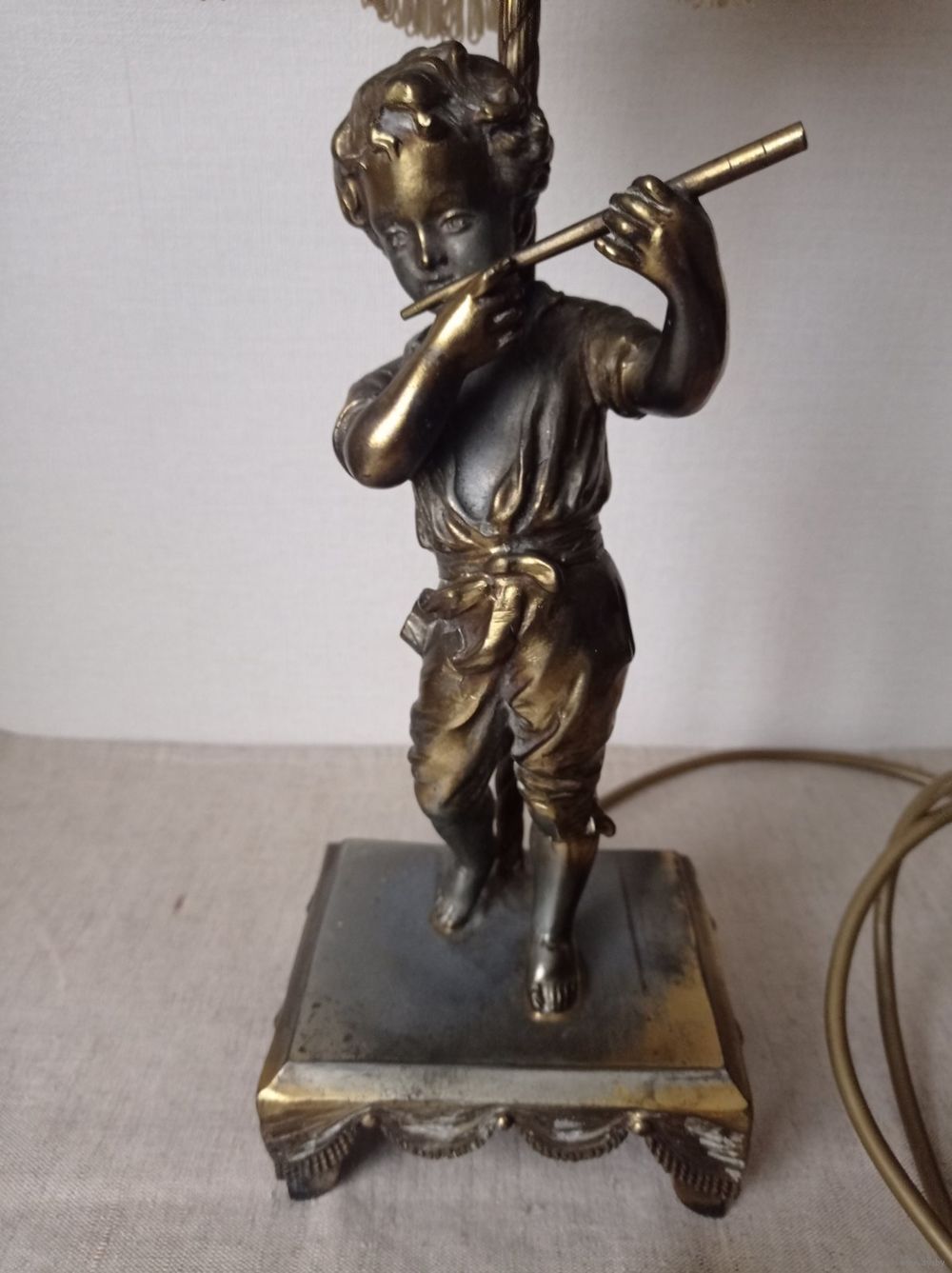 Основание металл (вероятно шпиатр), выполнено в виде фигурки мальчика, играющего на флейте.