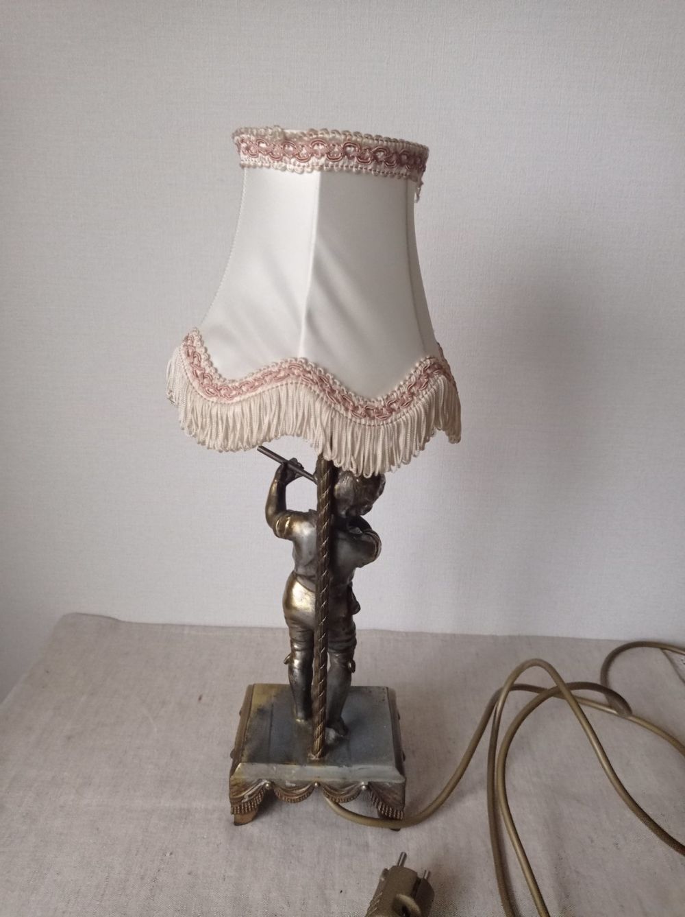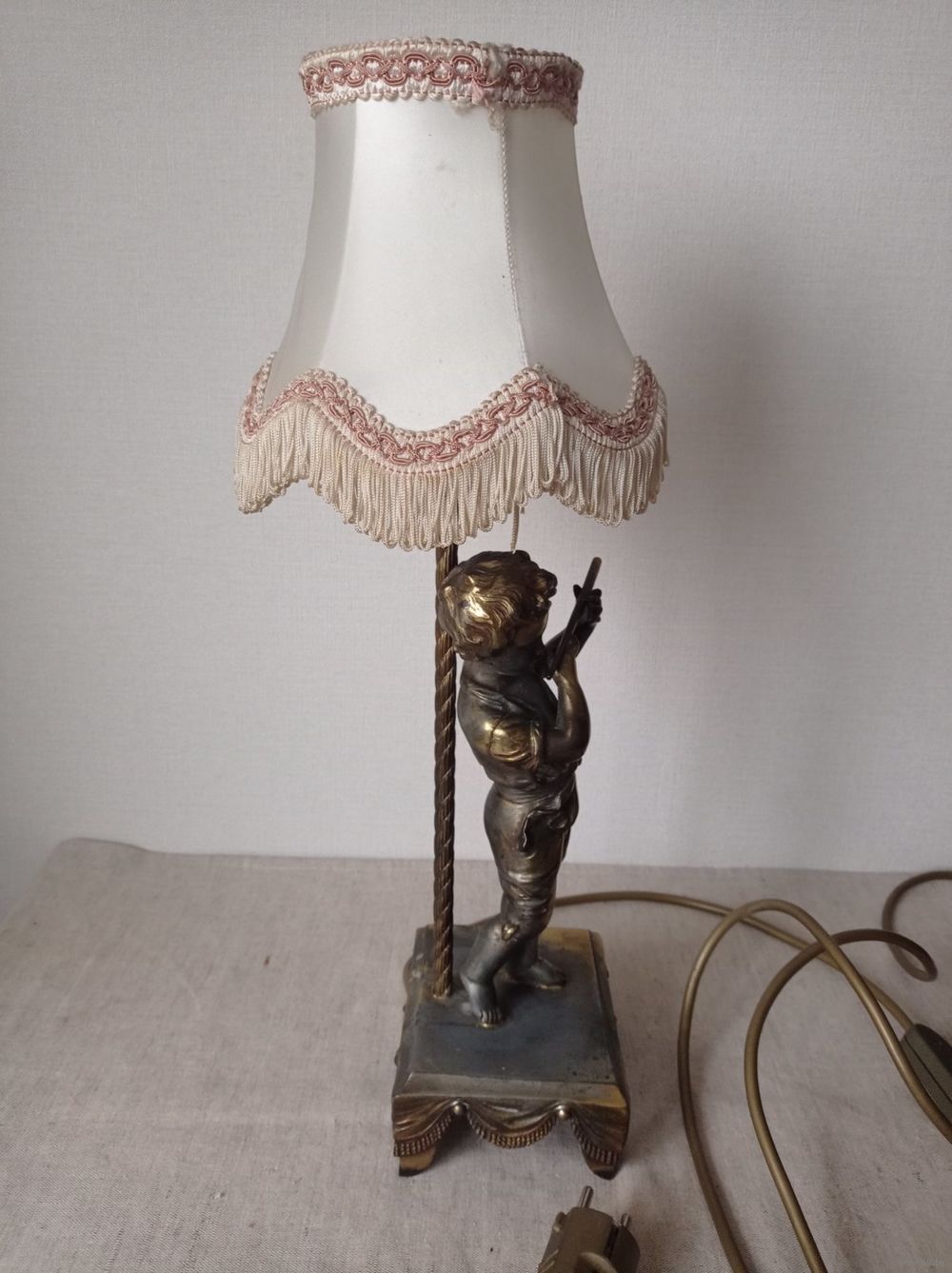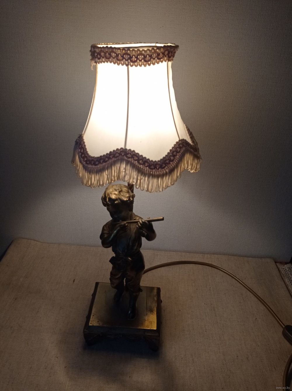 Старинная настольная лампа с тканевым абажуром, Франция.