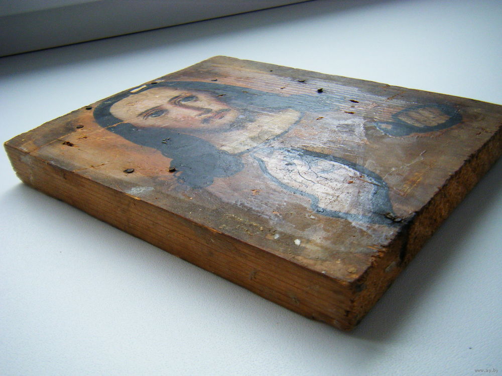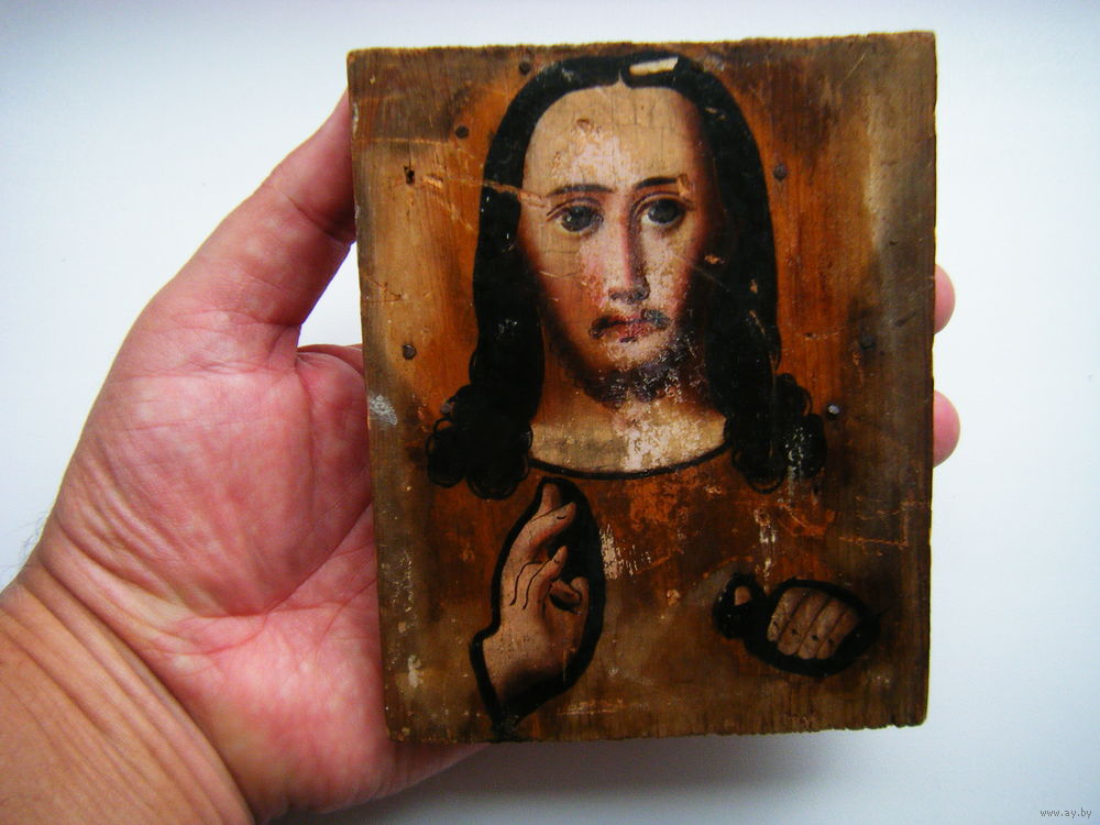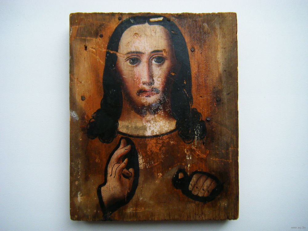 Старинная Рукописная икона СПАСИТЕЛЬ. 13х11см.