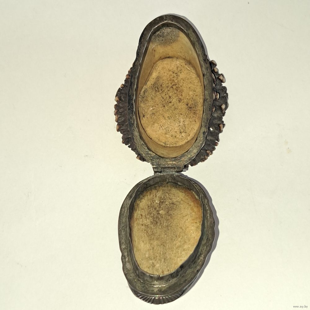 Шикарный предмет. Кость ,рог,серебро. Резьба. Германия 18 век. В отличном состоянии. Прекрасный подарок . Размер высота 6см. Ширина 10 см.