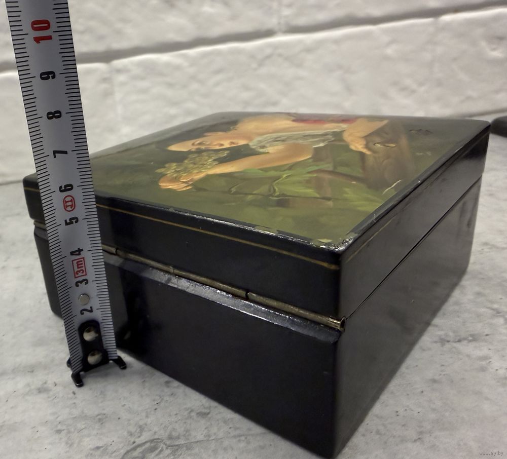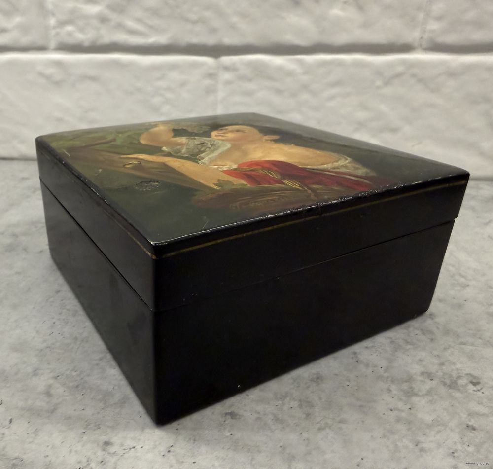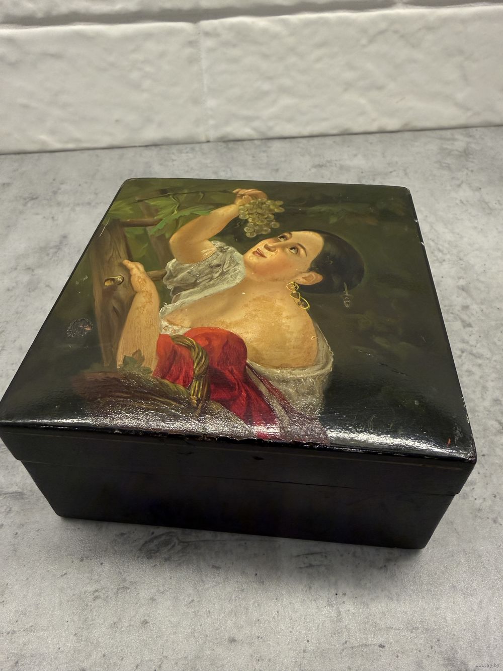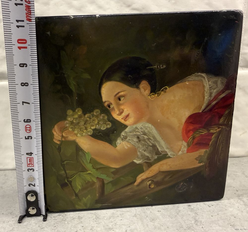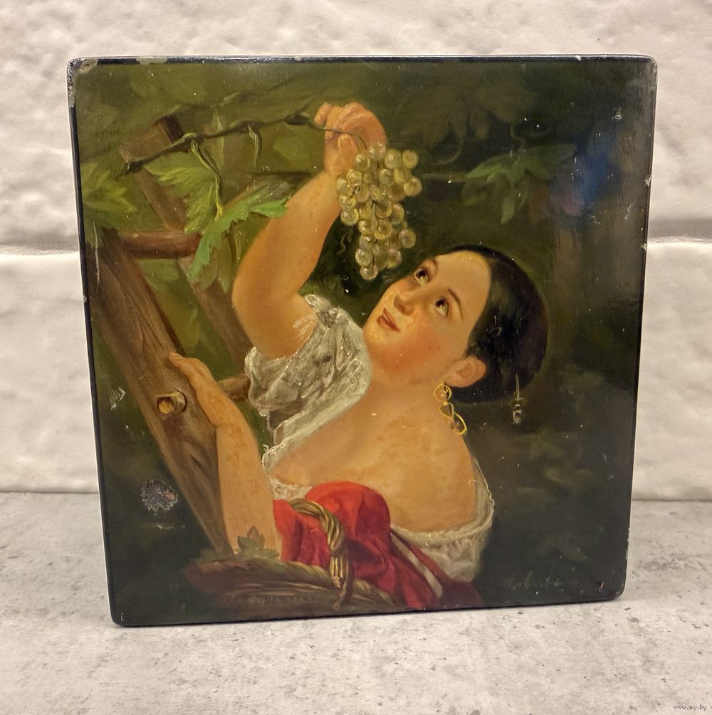Старинная Шкатулка. ДЕВУШКА с ВИНОГРАДОМ. Палех? Федоскино?. Распродажа коллекции!!!