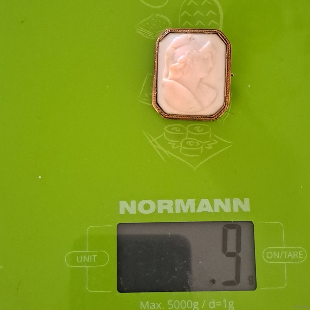 Очень красивая брошь Камея. Викторианская. Размер 3см. на 2.7 см. Золото 585 пробу держит. Клейм нет.