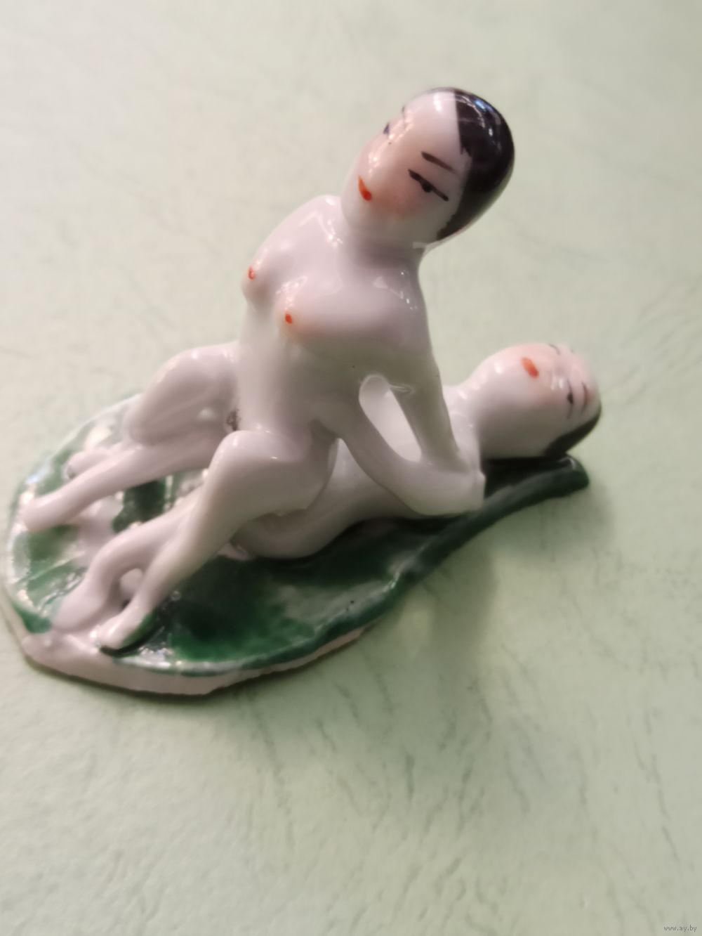 Старинная, винтажная китайская керамическая статуэтка ручной работы с пикантным сюжетом из Камасутры, XIX век .
