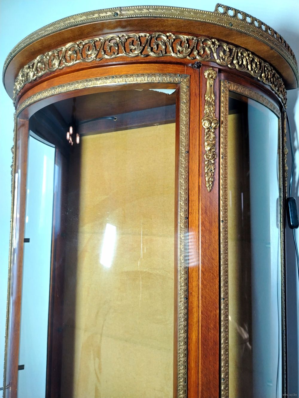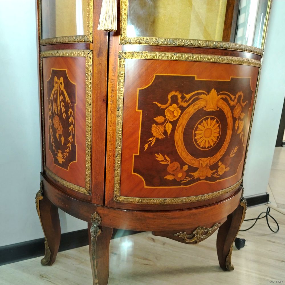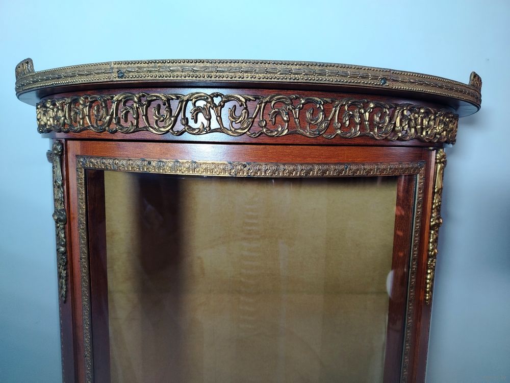 Старинная витрина. Европа. Массив дерева, бронзовые элементы, подсветка. В отличном состоянии без дефектов. Высота 155см ширина 70см глубина 38см.