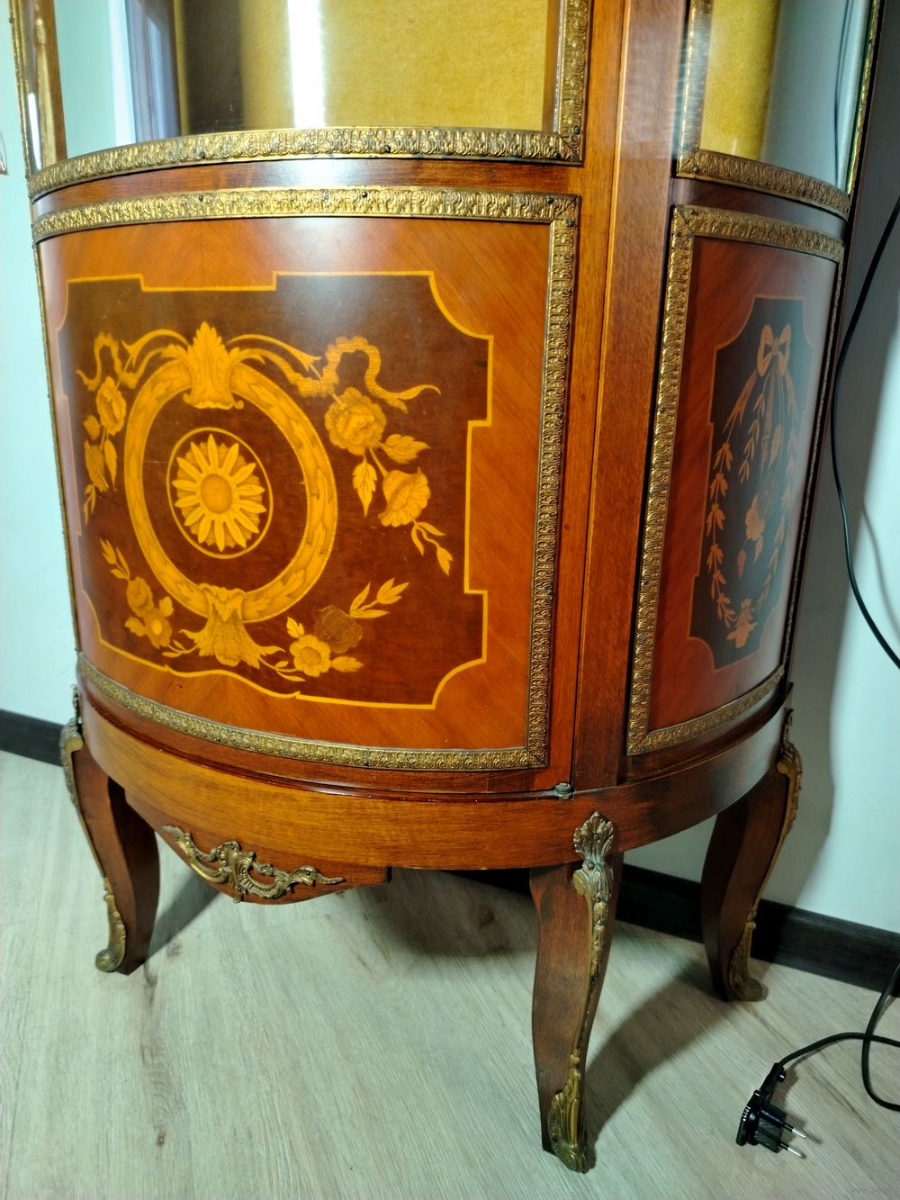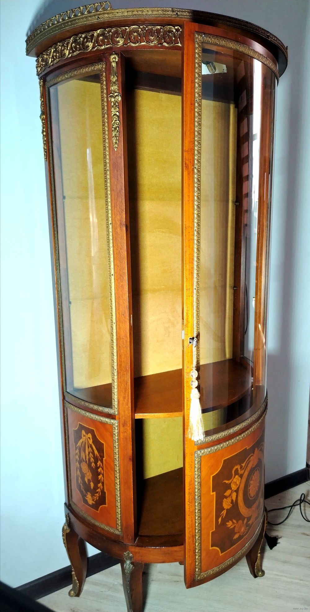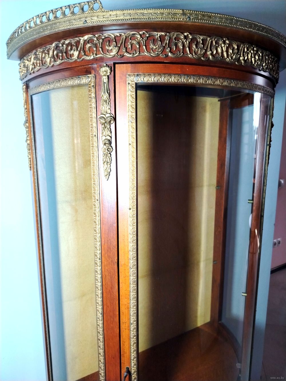 Старинная витрина. Европа. Массив дерева, бронзовые элементы, подсветка. В отличном состоянии без дефектов. Высота 155см ширина 70см глубина 38см.