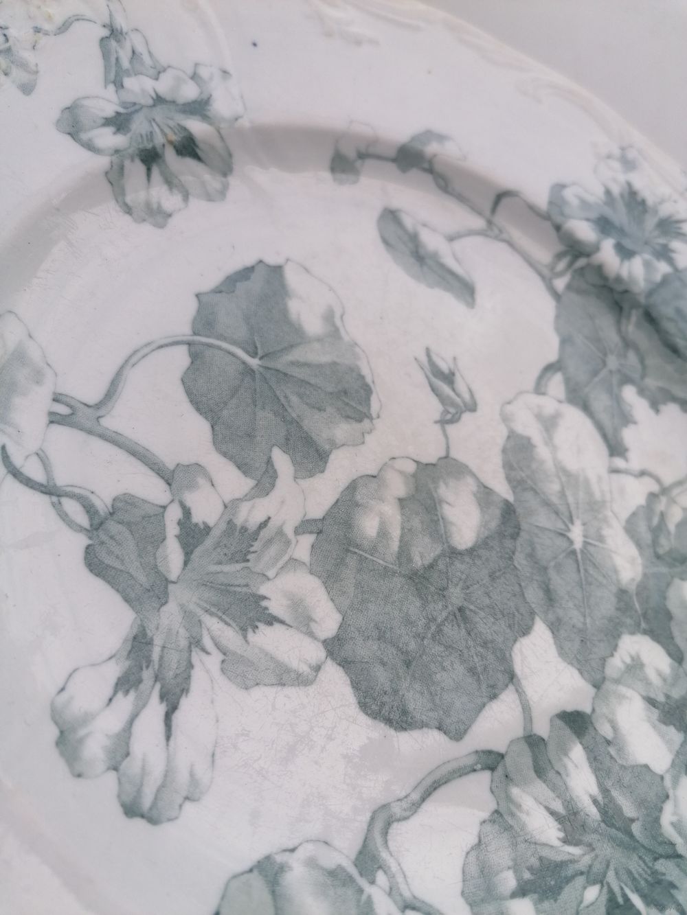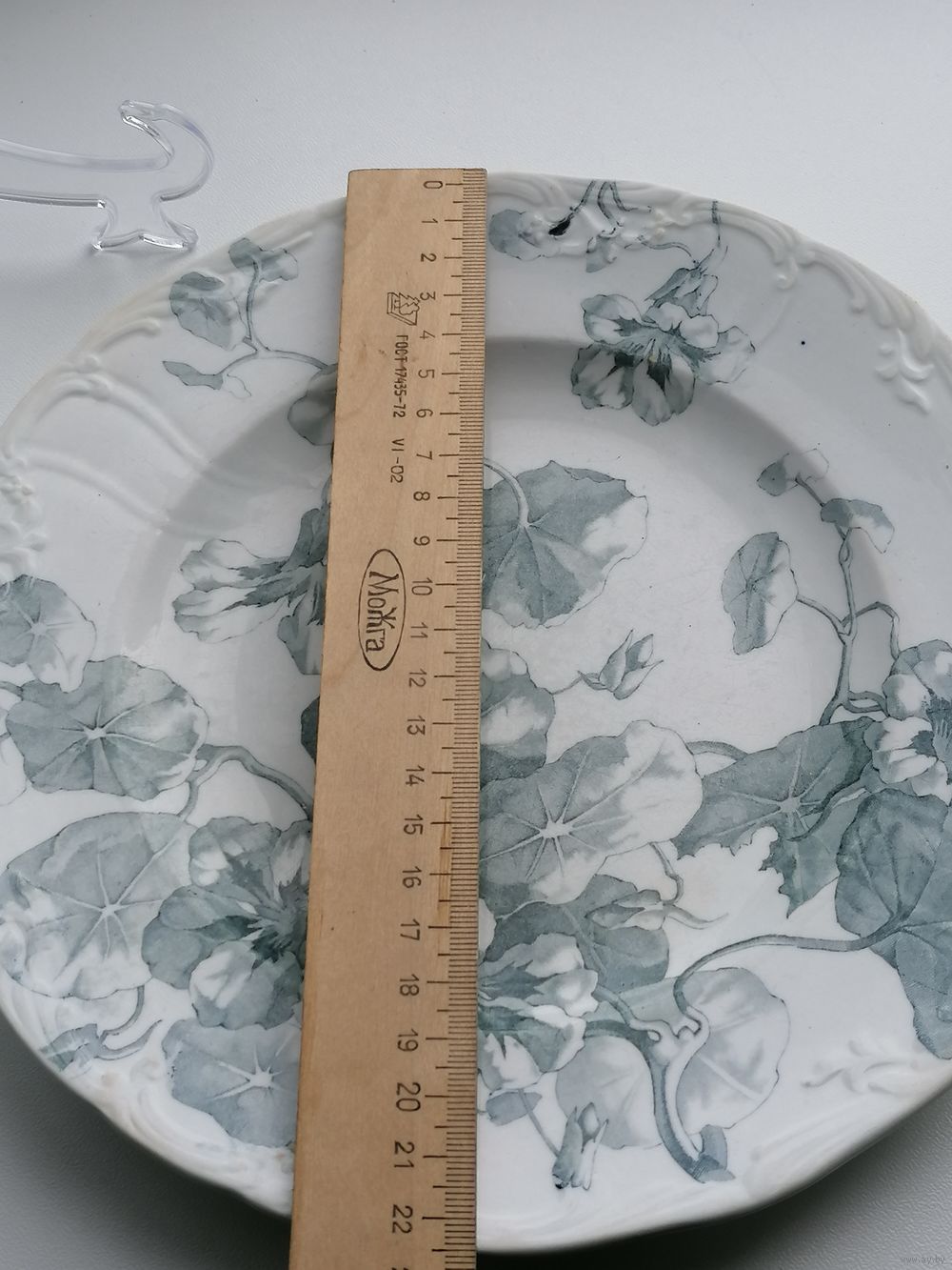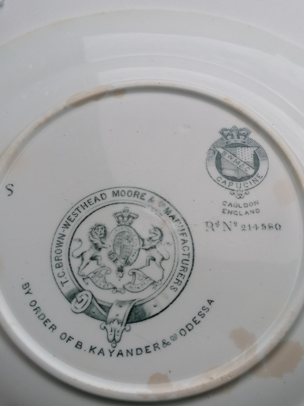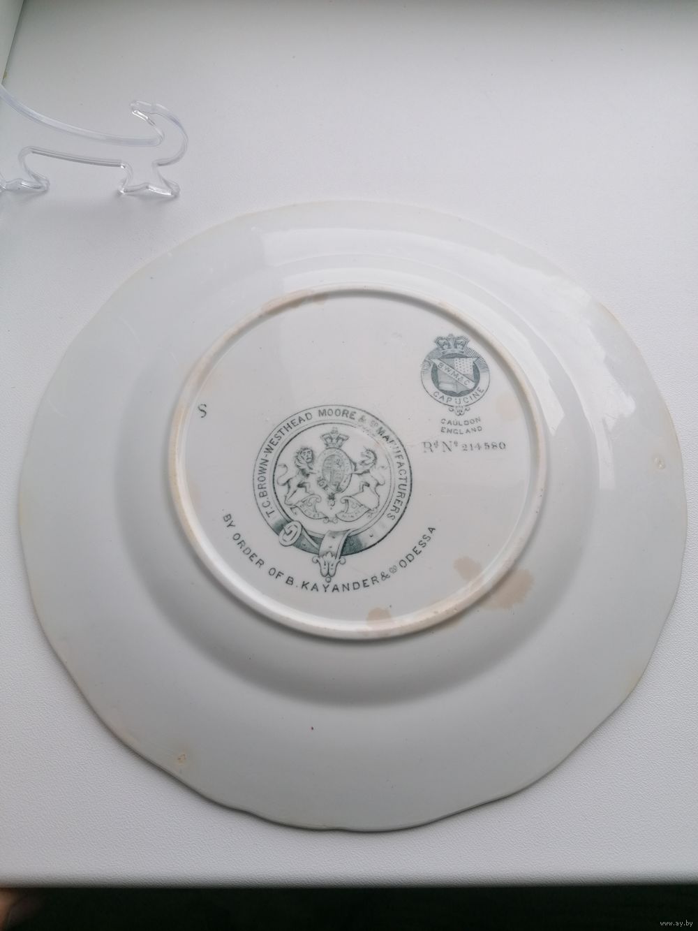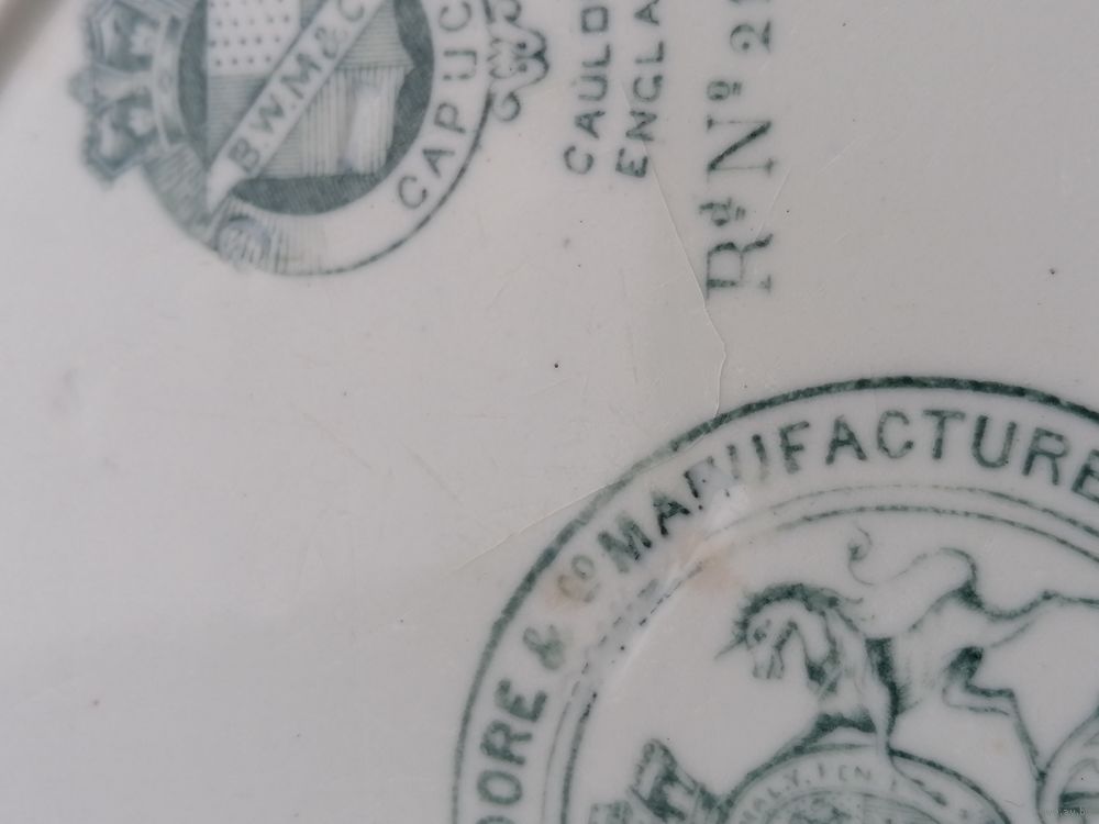 Внешнее состояние на фото. Впереди царапины по глазури. Сзади пятна, в одном месте волосок - не сквозной - на фото показал.