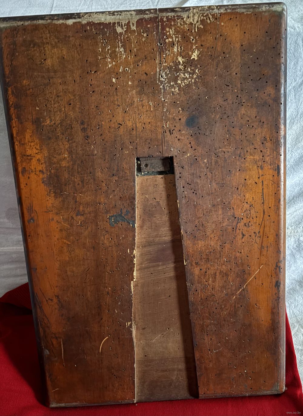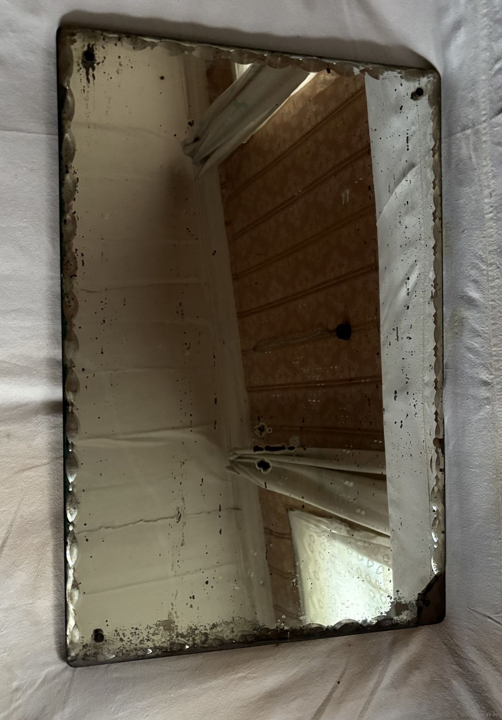 Очень старое настольное очень тяжелое толстое зеркало.Зеркало имеет рифленую окантовку,есть скол и темные пятна ,смотрите фото.Зеркало крепится к натуральной деревянной основе,но отсутствует ножка.Возможен торг