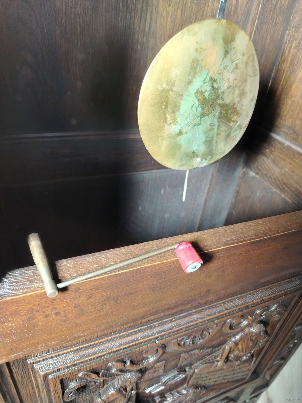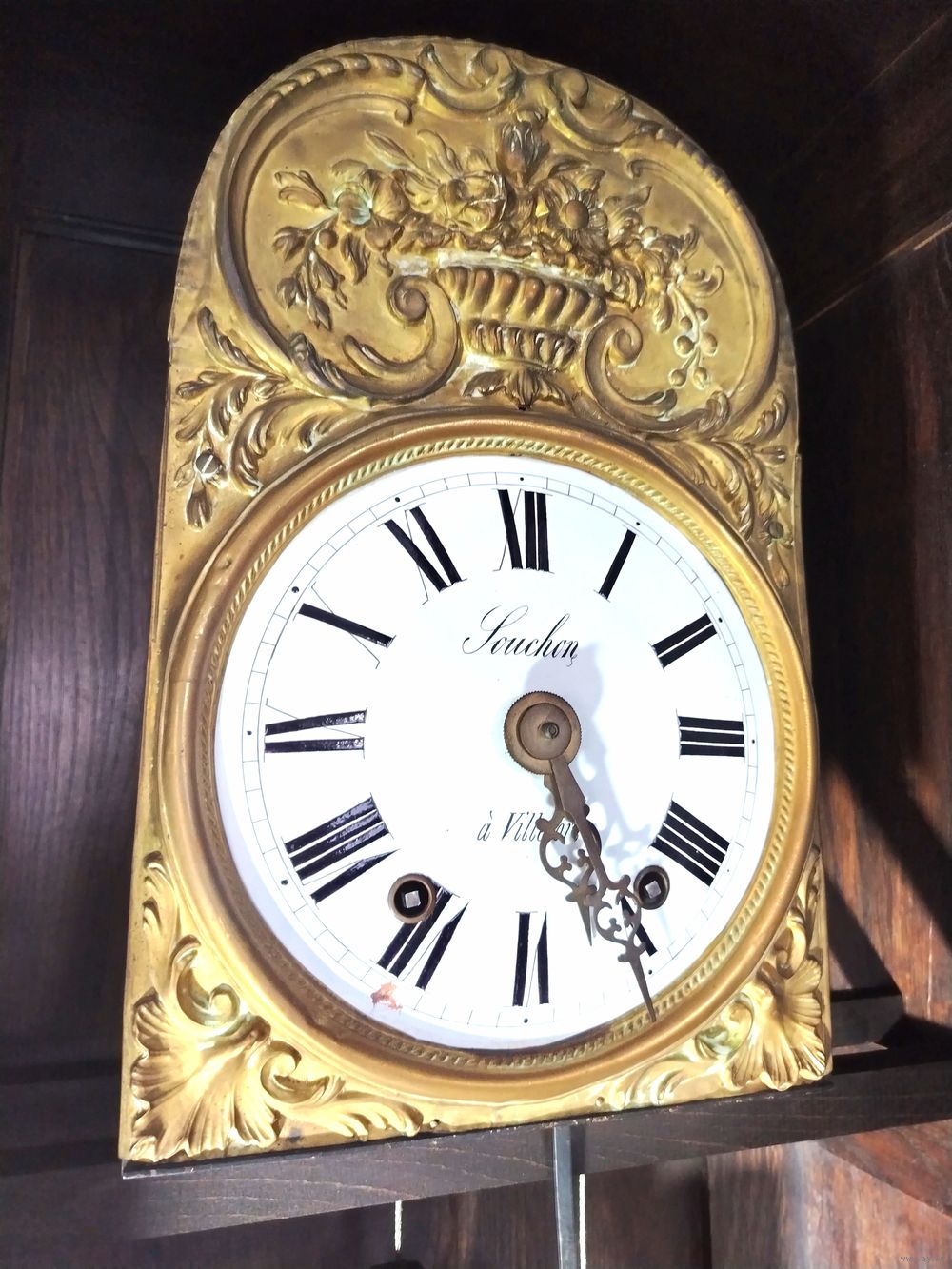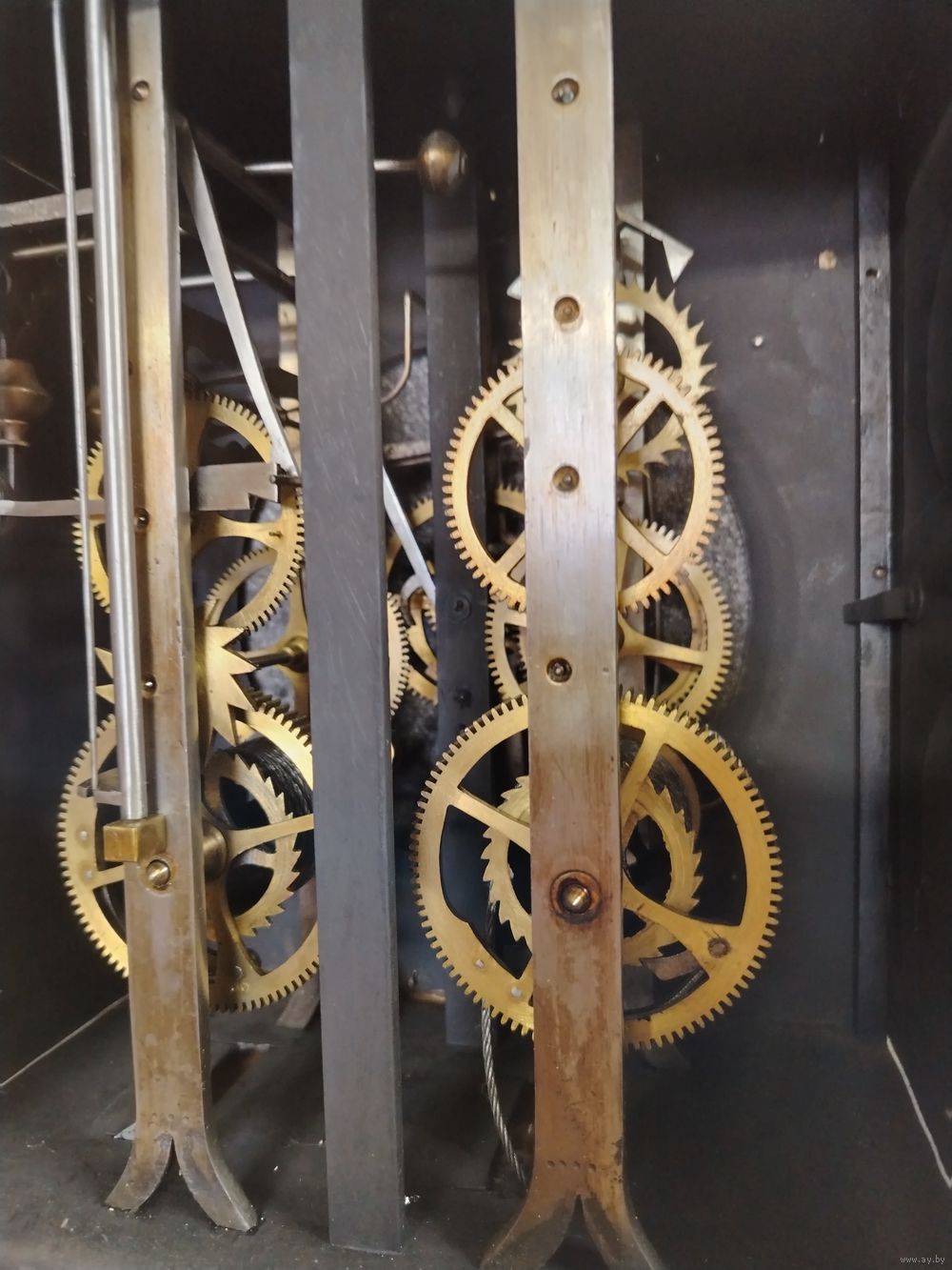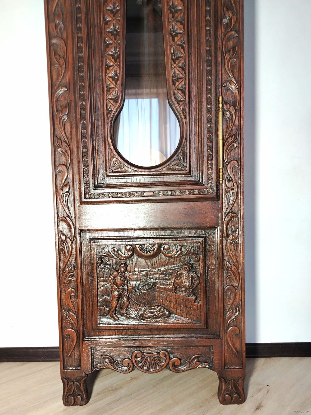 Старинные часы. Европа. Корпус массив дуба с красивой резьбой. Механизм в рабочем состоянии с боем на час и на полчаса. Высота 220см ширина 57см глубина 33см.