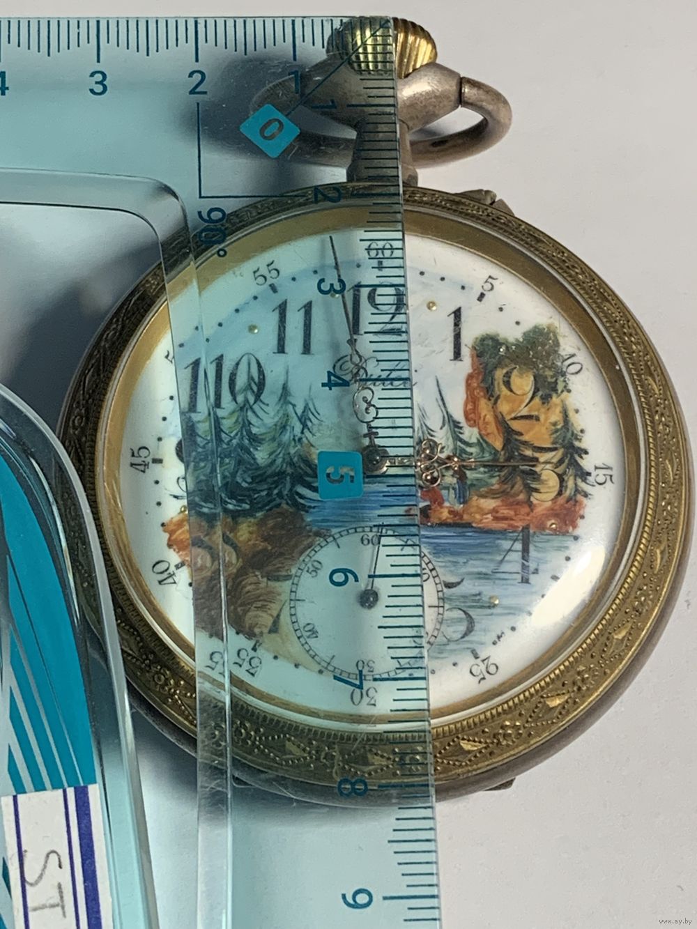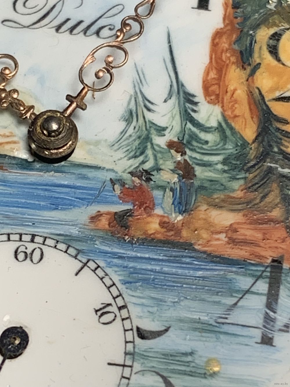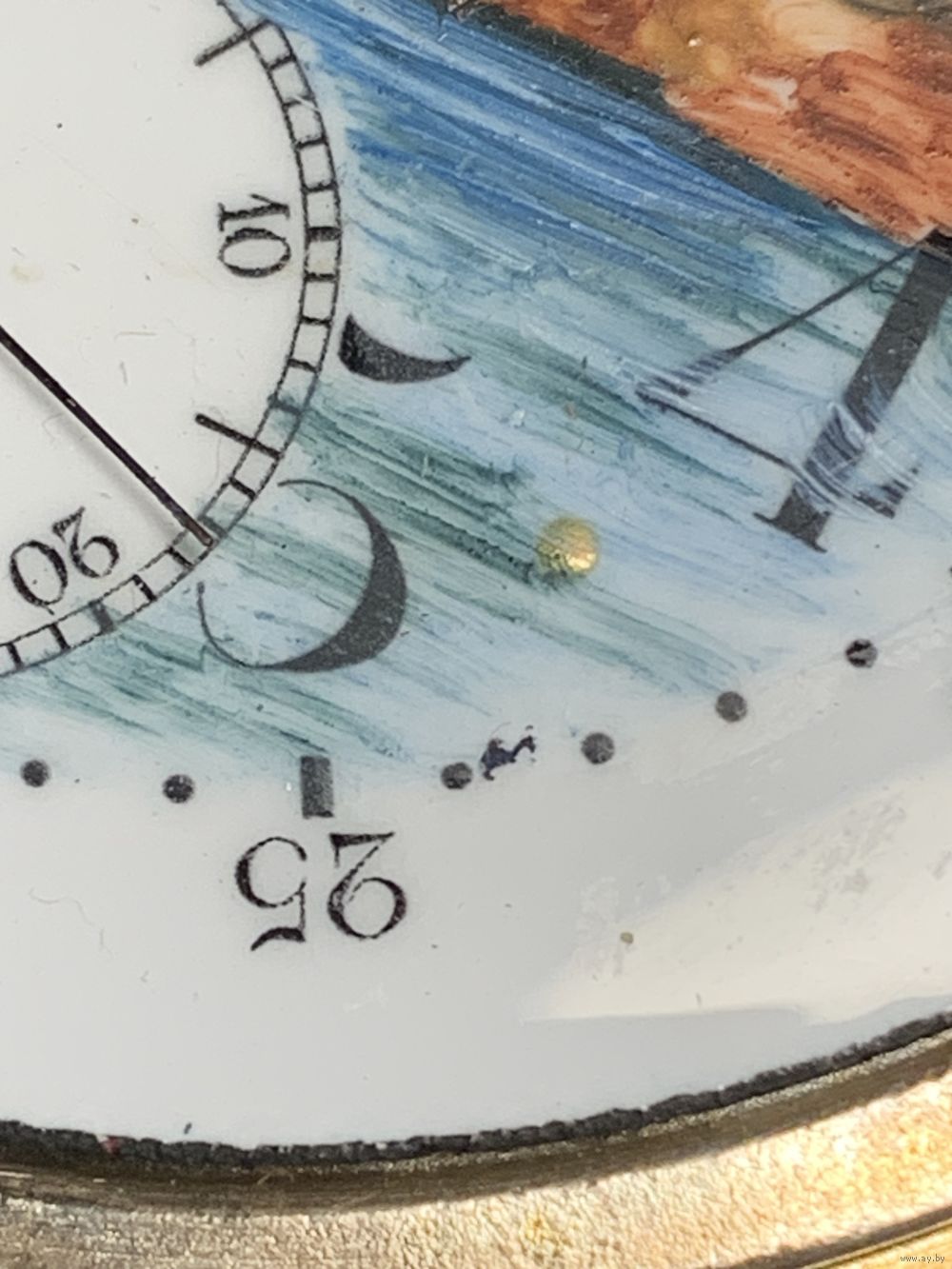 Эмалевый циферблат с художественной росписью на весь циферблат, выполненной вручную, с подписью художника.