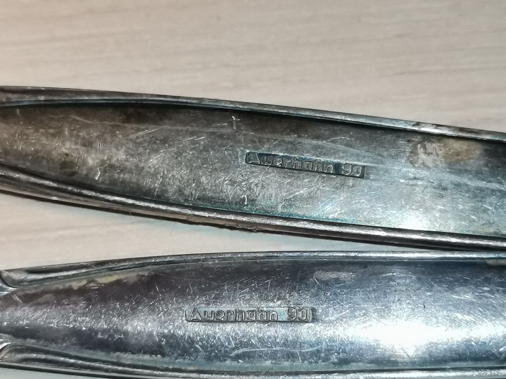 Старинные ложка с вилкой, латунь в посеребрении, длина 19 см., клеймо.