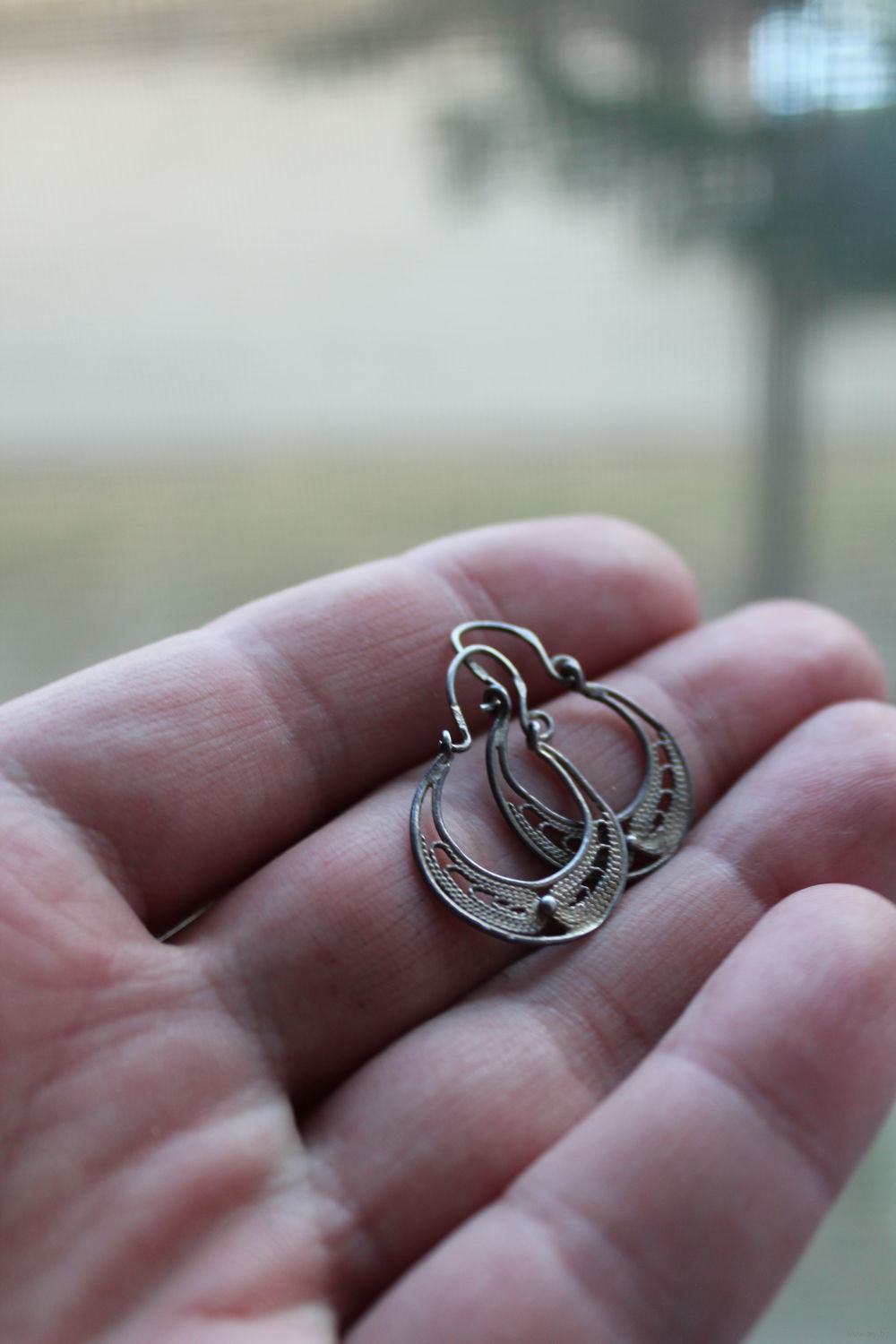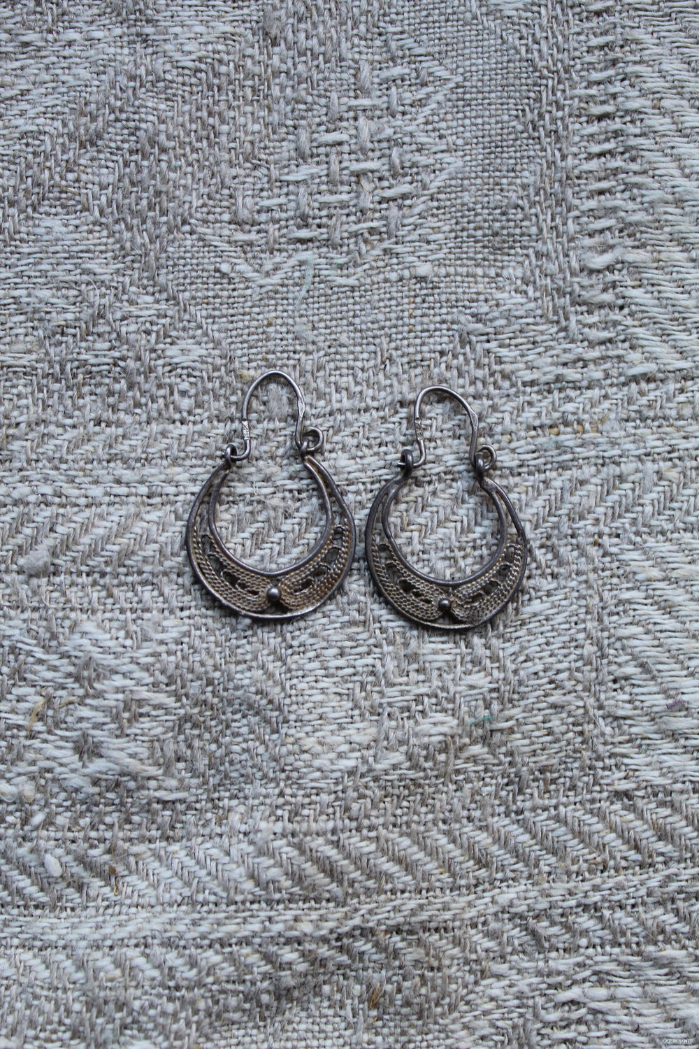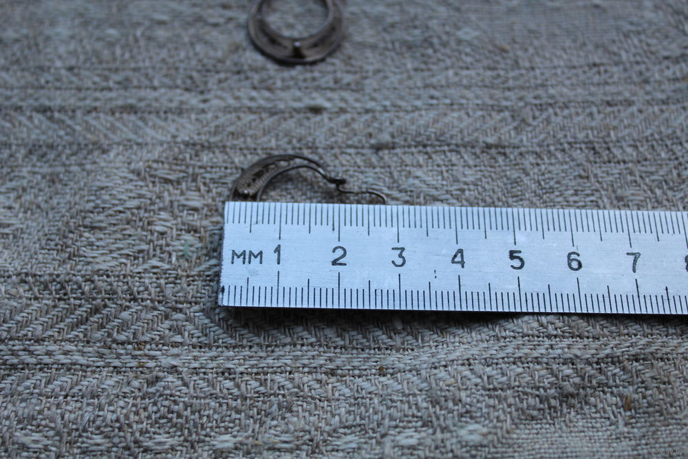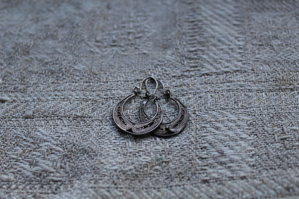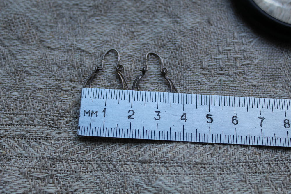 Старинные мельхиоровые серьги в технике скань-филигрань