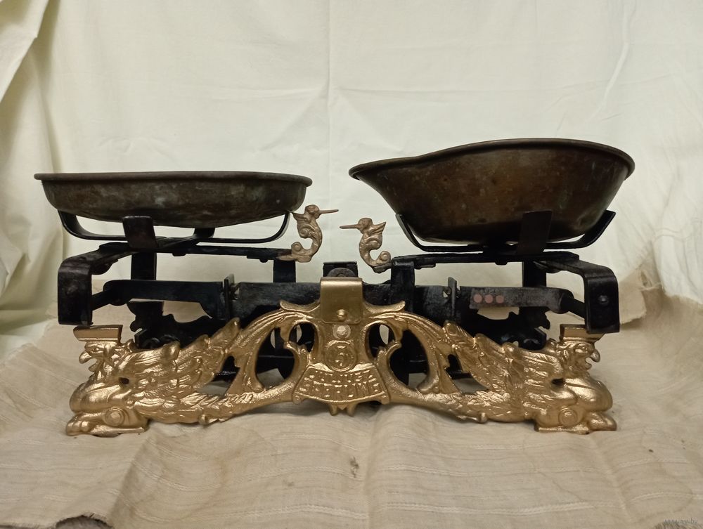 Старинные весы с клеймом. Так же есть клейма на чашечках.