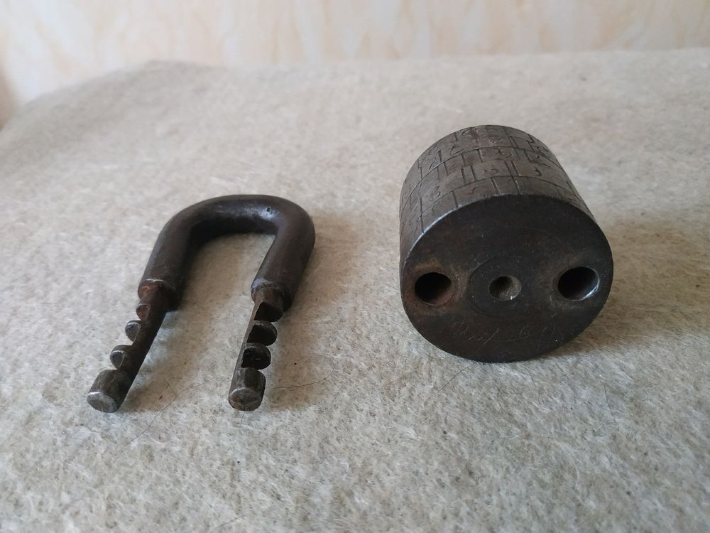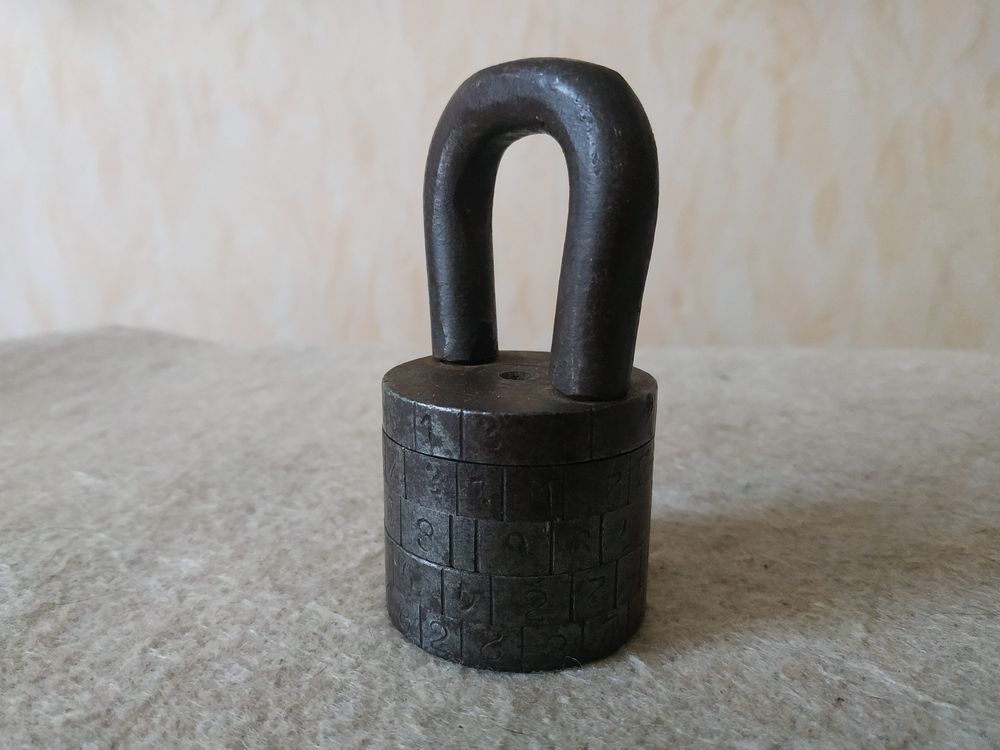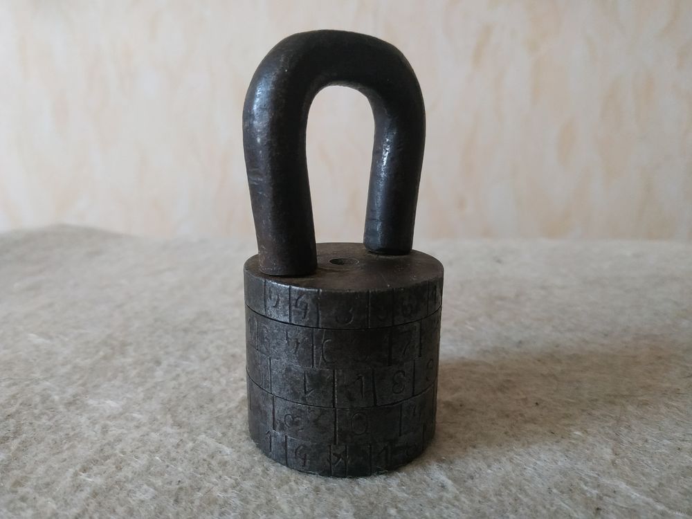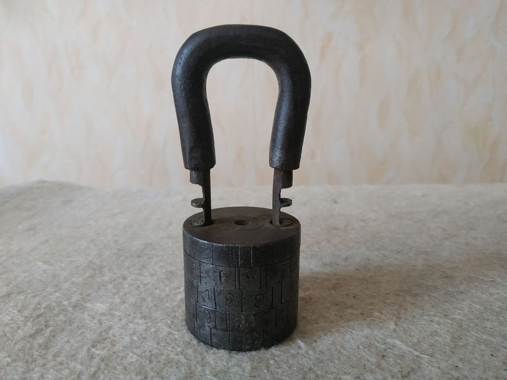 Старинный навесной механический кодовый замок. Российская империя, конец 19 века, начало 20 века.
