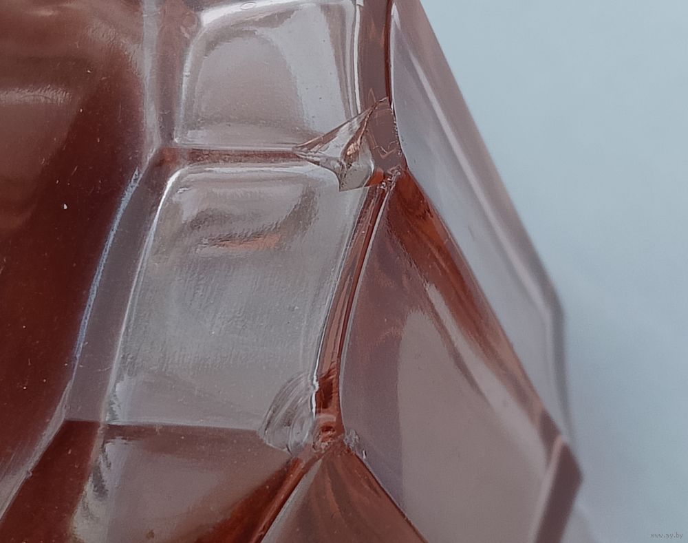 Флакон для парфюма имеет 2 незначительных скола (фото 3) на боковом ребре и скол на пробке (фото 5).