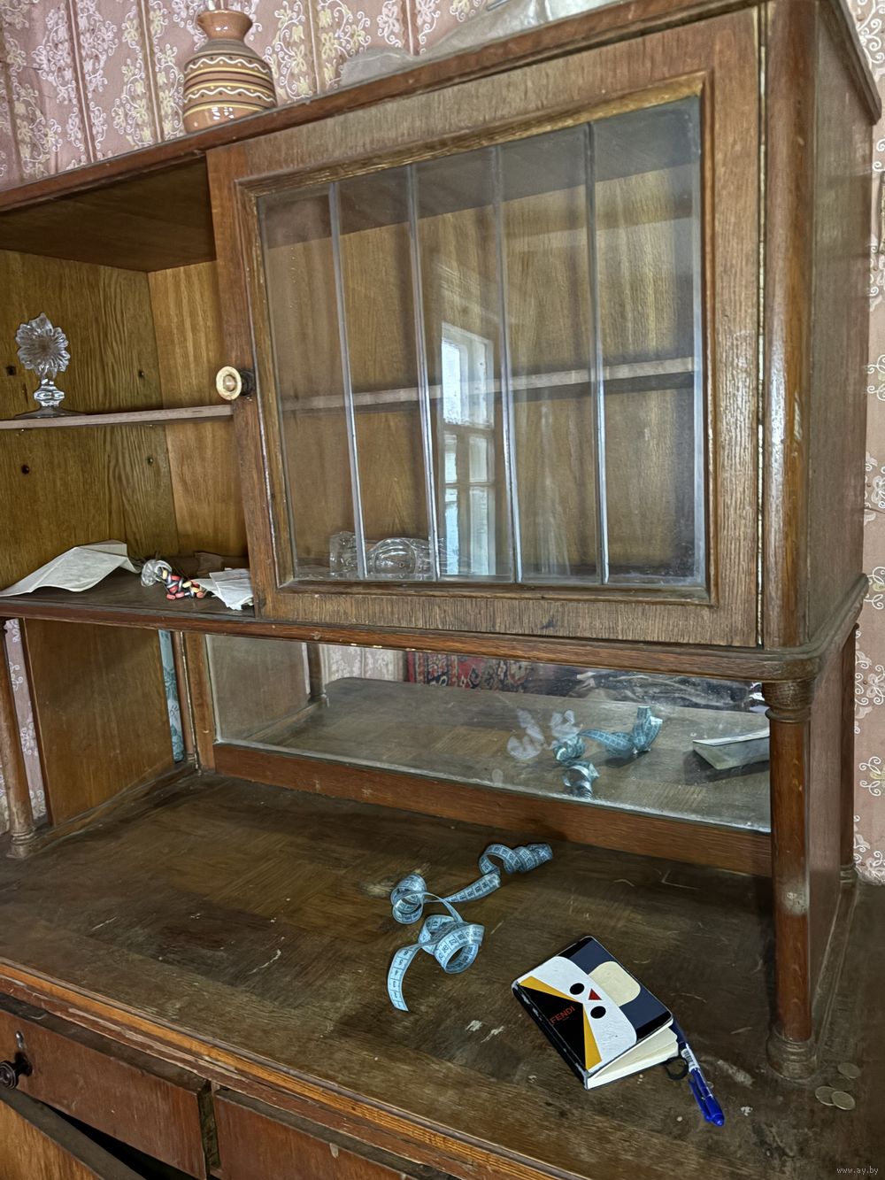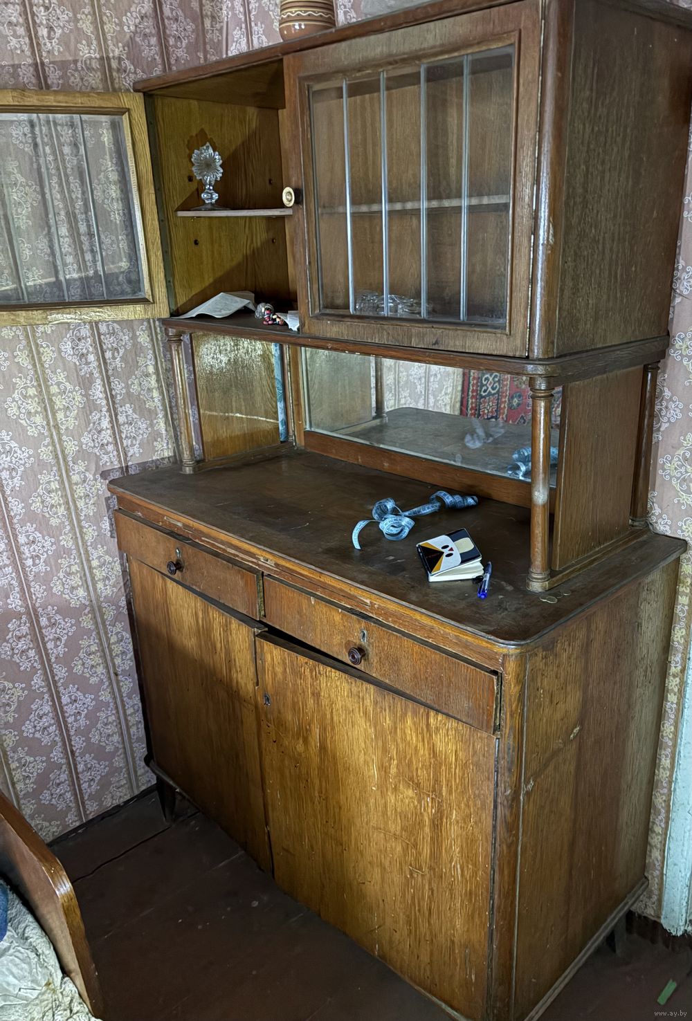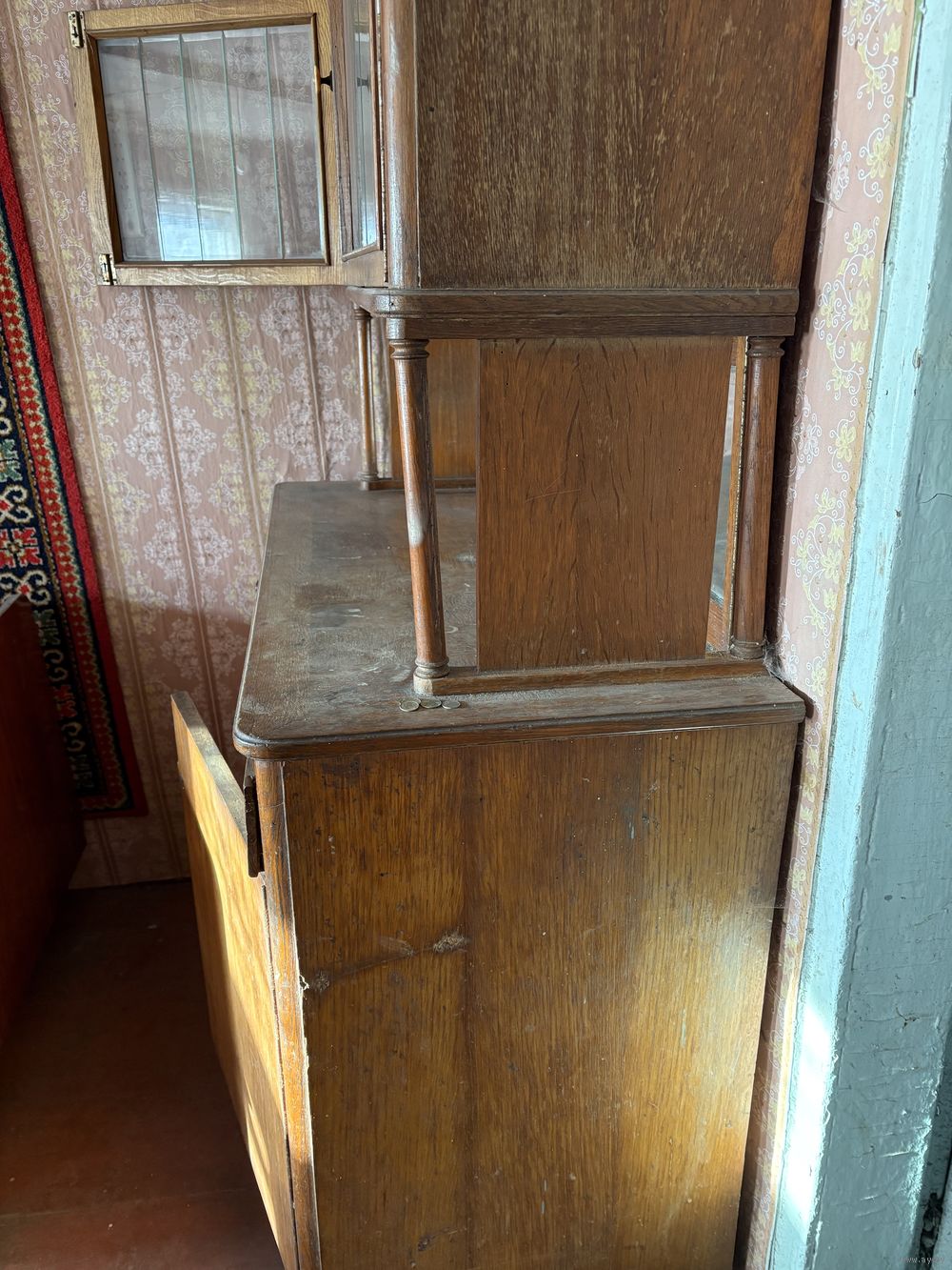 Старинный сервант со стеклянными дверцами и зеркалом.Крепкий, прочный, тяжелый. Не разборный. Состояние хорошее, НО не идеальное. На фото все видно- царапинки , трещинки, отслойки.Размеры: высота 152 см+ 18 см ножки